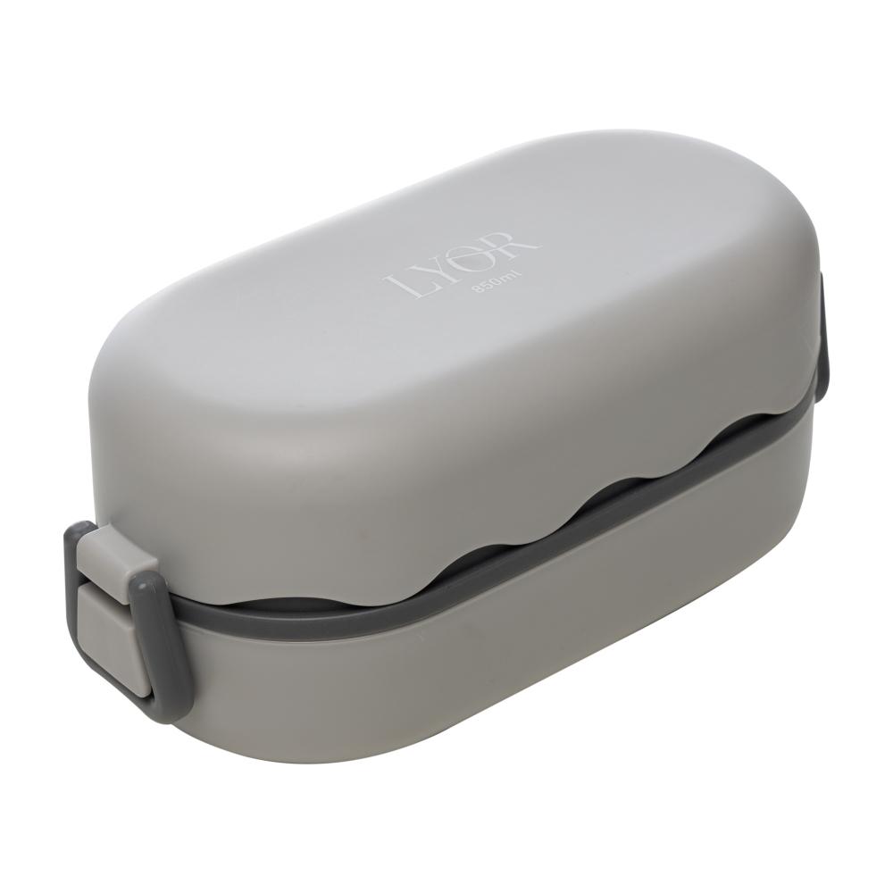 Marmita Hermética com Talheres Cinza Lyor Plástico 850ml