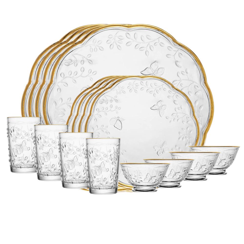 Jogo de Jantar 16 peças New Butterfly Fio de Ouro Cristal