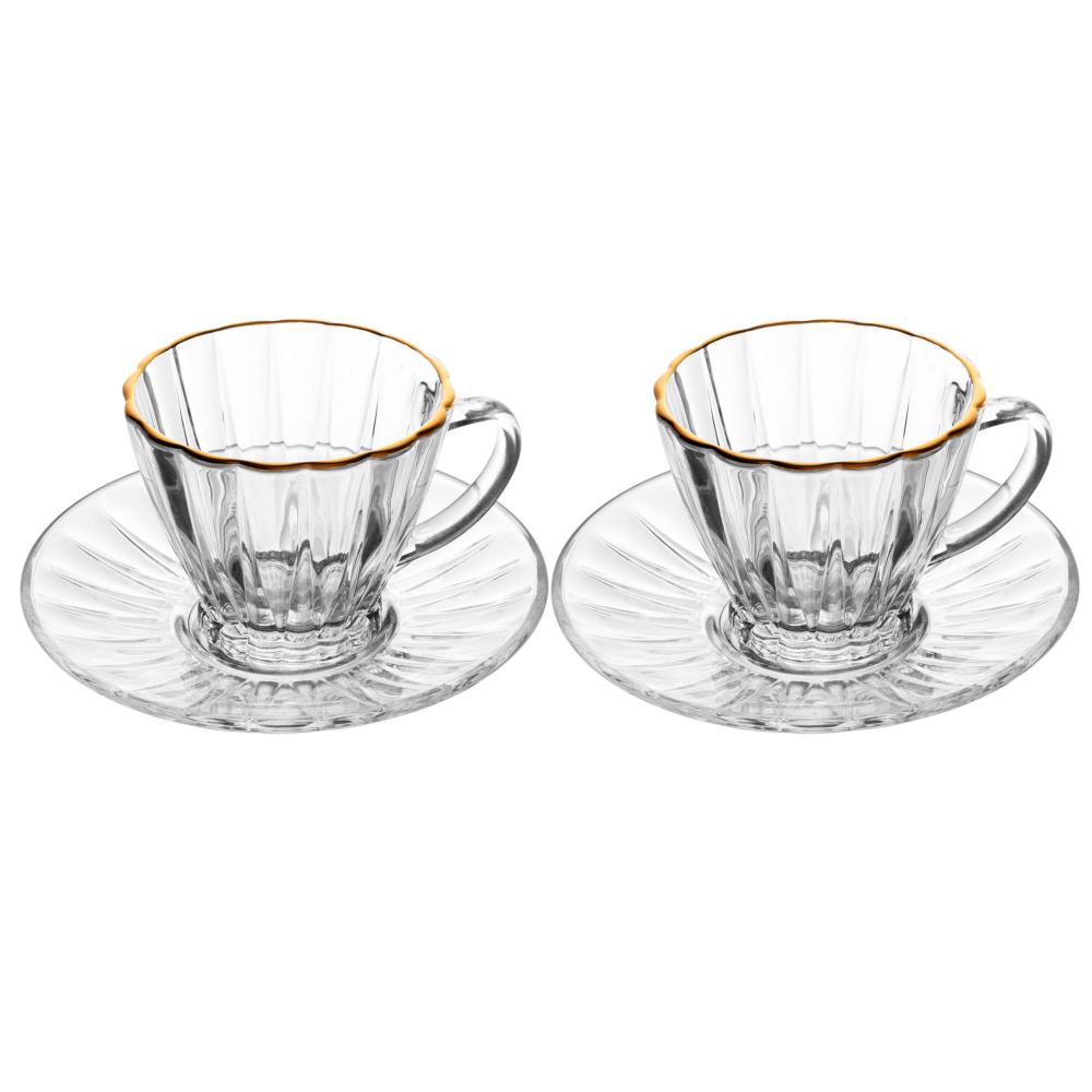 Conjunto 2 Xícaras para Chá com Fio de Ouro e Pires Radial