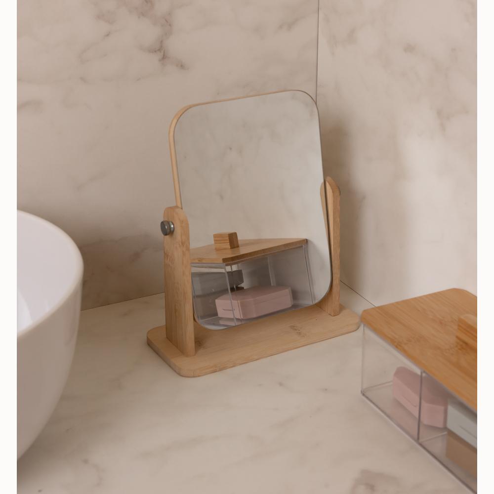 Espelho Giratório com Suporte para Mesa 18cm x 8cm x 21cmNaturalidade e funcionalidade com um toque de sofisticação.Naturalidade e funcionalidade com um toque de sofisticação.Com estrutura em bambu e base firme, este espelho giratório é perfeito para compor banheiros, penteadeiras e espaços de autocuidado. Seu design orgânico combina com ambientes minimalistas e contemporâneos.• Estrutura em bambuleve, resistente e com visual aconchegante.• Giro suavepermite ajustar o ângulo conforme a necessidade.• Base funcionalideal para apoiar pequenos itens do dia a dia.• Estilo naturalcombina com decorações clean, escandinavas ou rústicas.Lyor une estética e praticidade para valorizar cada momento da sua rotina.Contém: 1 Espelho Giratório com Suporte para MesaMedidas Produto: Altura 21,00cm x Largura 8,00cm x Comprimento 18,00cmPeso: 0,33KgLimpar com flanela