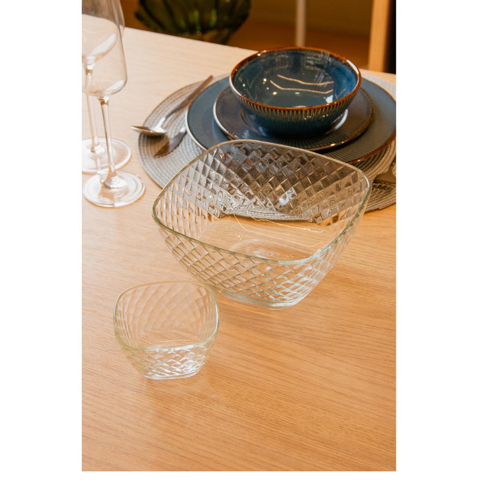 5 Peças para Sobremesa Lyor Diamond VidroConquiste olhares com elegância em cada detalhe.Conquiste olhares com elegância em cada detalhe.O Conjunto de 5 Peças para Sobremesa Diamond une brilho e delicadeza para deixar a apresentação ainda mais especial. Com design facetado e vidro de alta qualidade, é perfeito para valorizar desde doces até frutas frescas em qualquer ocasião.• Vidro de alta qualidadeTransparência e brilho que destacam cada composição.• Design facetadoEstilo sofisticado que combina com diferentes estilos de mesa.• Tamanho versátilIdeal para servir sobremesas, frutas ou pequenos mimos.• Elegância no cotidianoTransforme almoços e jantares em momentos ainda mais especiais.Sirva com charme e modernidade. A Lyor combina design e funcionalidade em peças que encantam e valorizam cada momento à mesa.Contém: 1 Bowl Médio4 Bowls PequenosMedidas Produto: Altura 9,20cm x Largura 15,80cm x Comprimento 15,80cmPeso: 1,41KgLavar com detergente neutro, esponja macia e secar imediatamente. Não lavar em máquinas, não utilizar produtos químico.