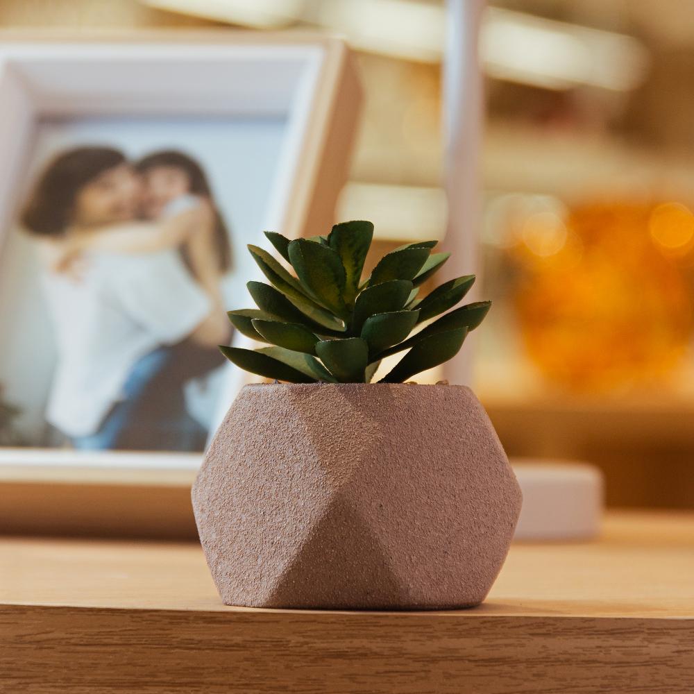 Cachepot Suculenta Artificial Lyor Geometry Cimento MarromCachepot com Suculenta Artificial Geometry 7cm x 9,5cm Marrom Cimento – LyorCachepot com Suculenta Artificial Geometry 7cm x 9,5cm Marrom Cimento – LyorDecore com praticidade e estilo.O Cachepot Geometry da Lyor é ideal para quem busca dar um toque decorativo ao ambiente com personalidade e leveza. Seu visual contemporâneo é perfeito para compor desde ambientes modernos até os mais neutros.Estilo moderno e funcionalNa cor marrom e com acabamento natural, valoriza o espaço e combina com diversos estilos de decoração. Seu tamanho compacto, com 7cm de altura e 9,5cm de diâmetro, permite que seja facilmente posicionado em prateleiras, mesas, aparadores ou escritórios.Leve mais charme e estilo para sua decoração com o Cachepot Geometry da Lyor – um toque simples que faz toda a diferença.Lyor – Soluções completas para o seu lar.Contém: 1 Cachepot1 Suculenta ArtificialMedidas Produto: Altura 9,50cm x Largura 7,00cm x Comprimento 7,00cmPeso: 0,20KgLimpar com flanela branca e seca. Não utilizar produtos químicos.