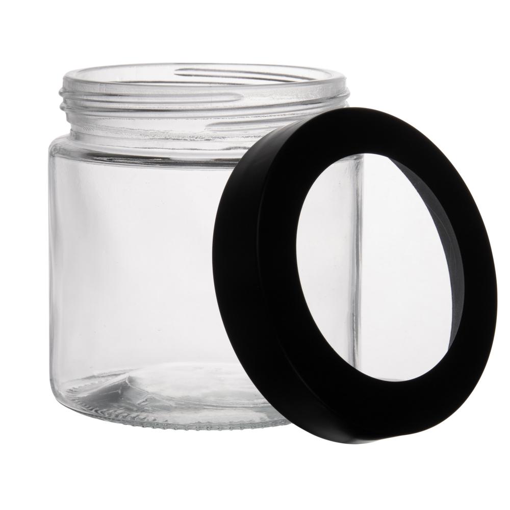 Porta Mantimentos Tampa Preta Visor Acrilíco 880ml Vidro