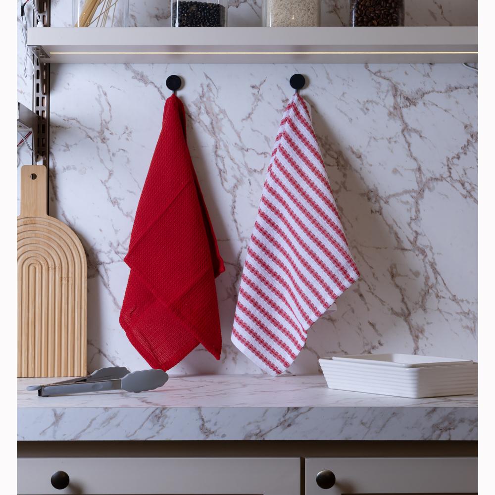 2 Panos de Prato Lyor Verona 60x40cm Vermelho Branco Algodão