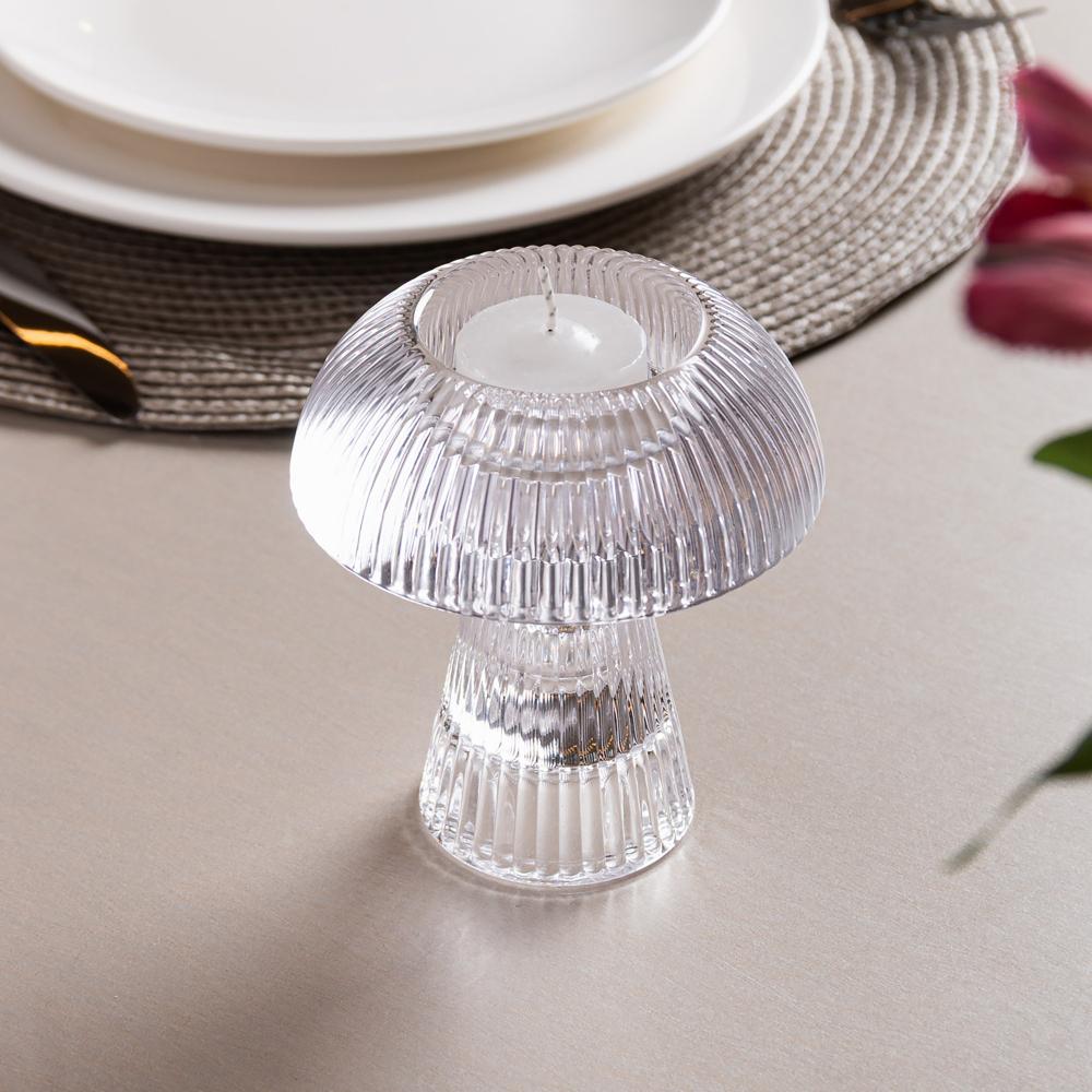 Castiçal Mushroom Lines 10cm x 10cm x 11cm Vidro Lyor