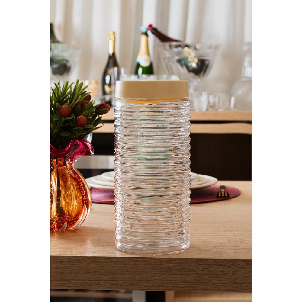 Pote com Tampa Plástica Lyor Colmeia 1,5L Amarelo Vidro"A solução ideal para clientes que precisam de mais capacidade de armazenamento sem abrir mão de um bom design. O Pote Colmeia de 1,5L complementa a linha e atende a uma necessidade clara do mercado.A solução ideal para clientes que precisam de mais capacidade de armazenamento sem abrir mão de um bom design. O Pote Colmeia de 1,5L complementa a linha e atende a uma necessidade clara do mercado.Completa a linha, aumenta o ticket médioOferecer um tamanho maior aumenta o valor da compra para clientes que estão montando o jogo completo.Resolve uma necessidade específicaPerfeito para armazenar produtos volumosos, um argumento de venda muito prático e direto.Posicionamento ""tamanho família""É fácil de apresentar como a opção ideal para famílias ou para quem compra mantimentos a granel.Design como forte diferencialO relevo de colmeia o destaca dos potes grandes e lisos, conquistando o cliente que busca um algo a mais.Lyor – Soluções inteligentes para vendas maiores."Contém: 1 PoteLava Louça: NãoMicroondas: NãoForno: NãoFogão: NãoFreezer: NãoMedidas Produto: Altura 23,00cm x Largura 10,00cm x Comprimento 10,00cmPeso: 0,70KgCor: IncolorMaterial: VidroLavar com detergente neutro, esponja macia e secar imediatamente. Não lavar em máquinas, não utilizar produtos químico.