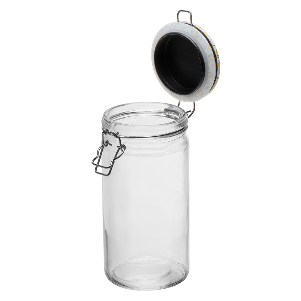 Pote Hermético com Clipe em Metal Siciliano 1,1L VidroA solução charmosa e funcional para guardar seus mantimentos do dia a dia. O Pote Hermético Siciliano de 1,1L tem o tamanho ideal para os ingredientes que você mais usa, garantindo frescor e um toque de cor na cozinha.A solução charmosa e funcional para guardar seus mantimentos do dia a dia. O Pote Hermético Siciliano de 1,1L tem o tamanho ideal para os ingredientes que você mais usa, garantindo frescor e um toque de cor na cozinha.Conserva os alimentos por mais tempoO fechamento hermético com clipe de metal é perfeito para manter a crocância de biscoitos e a qualidade de açúcares e massas.Tamanho coringa para a despensaA capacidade de 1,1 litro é extremamente versátil, adaptando-se a uma grande variedade de alimentos.Design alegre que decoraA estampa de limões sicilianos leva o charme do Mediterrâneo para suas prateleiras, deixando tudo mais bonito.Fácil de usar e limparO vidro é um material higiênico, que não pega cheiro e facilita a limpeza e a manutenção no dia a dia.LyorSoluções completas para o seu lar.Contém: 1 Pote HerméticoLava Louça: NãoMicroondas: NãoForno: NãoFogão: NãoFreezer: NãoMedidas Produto: Altura 20,00cm x Largura 10,00cm x Comprimento 14,00cmPeso: 0,69KgCor: IncolorMaterial: VidroLavar com detergente neutro, esponja macia e secar imediatamente. Não lavar em máquinas, não utilizar produtos químico.