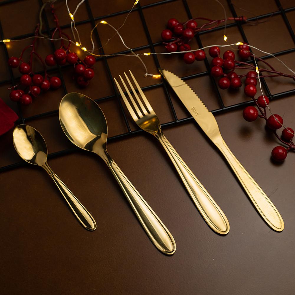 6 Colheres de Mesa Lyor Gastro Dourado de Aço Inox 19cm