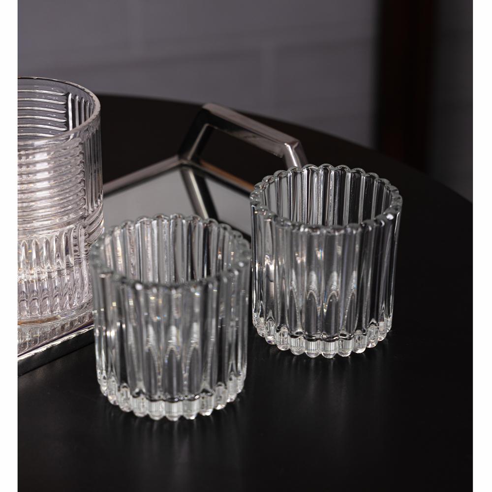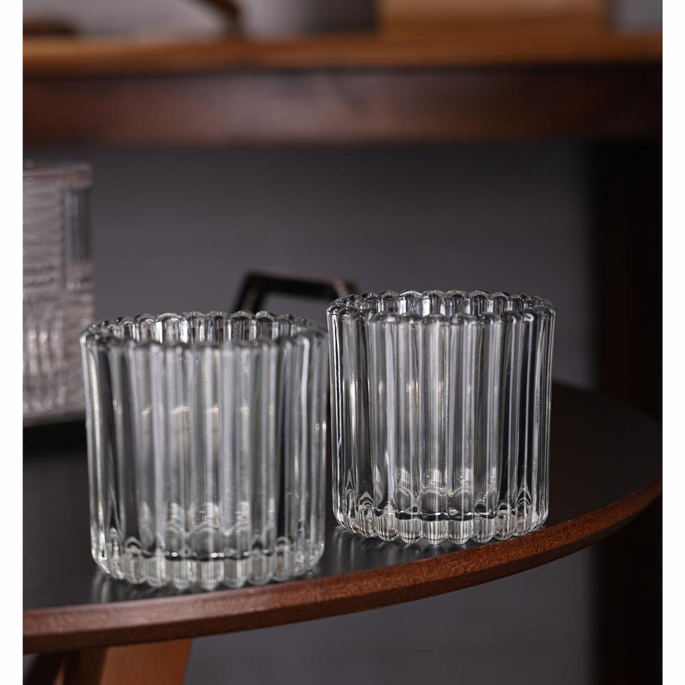 2 Porta Velas Wolff Lines 7,5cm x 7,5cm x 7,5cm Vidro
