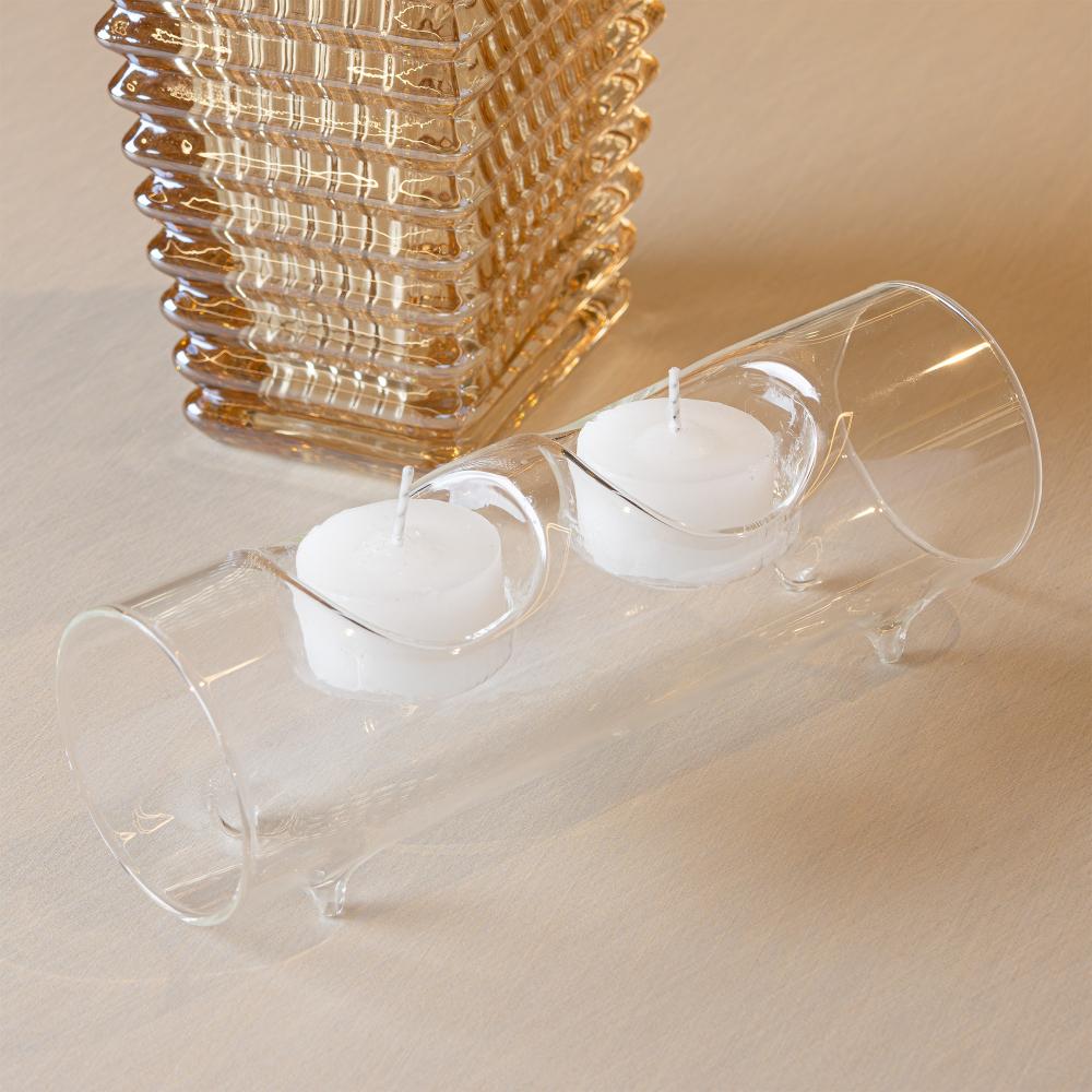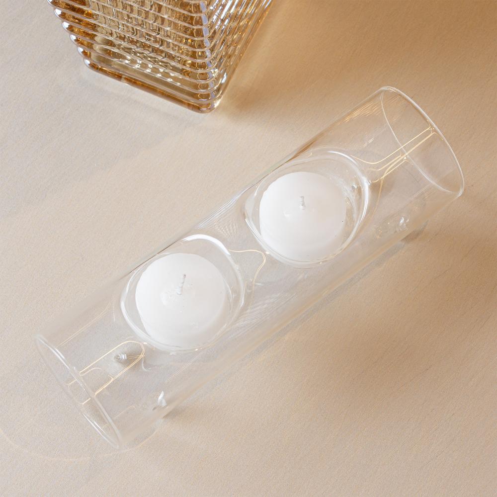 Porta Vela Duplo Wolff Lume 18cm x 5,8cm x 6,2cm Vidro Boro
