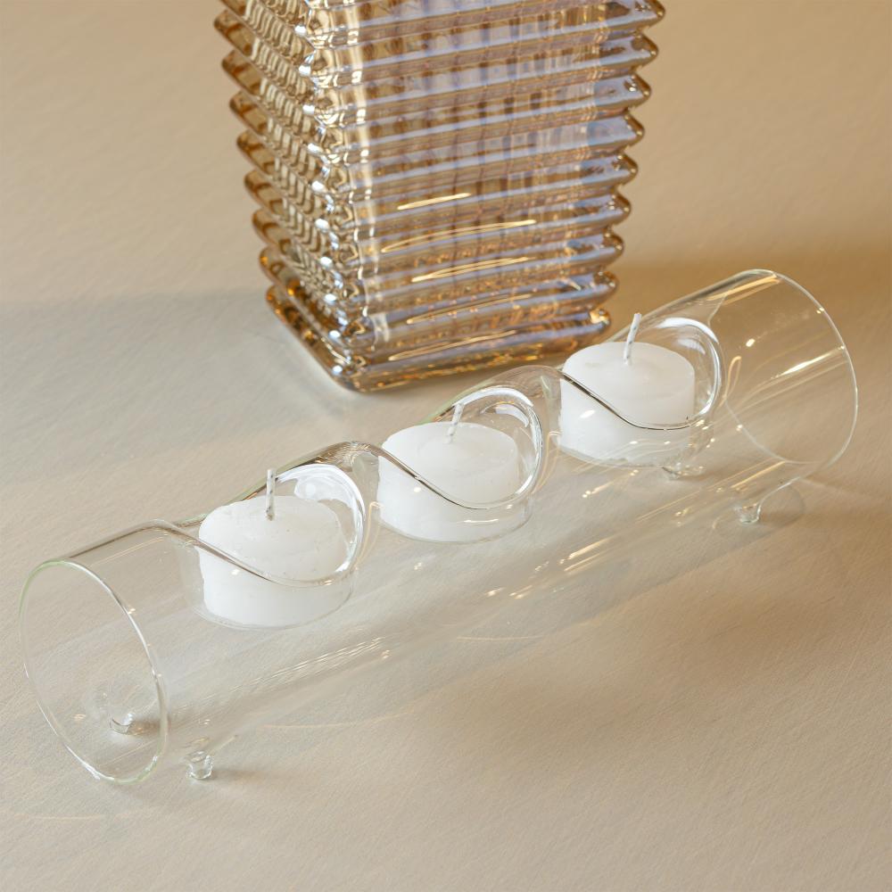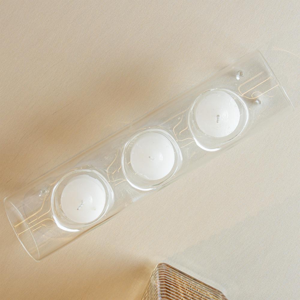 Porta Vela Triplo Wolff Lume 23,5cm x 5,8cmx6,2cm Vidro Boro