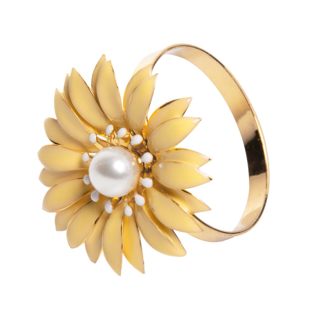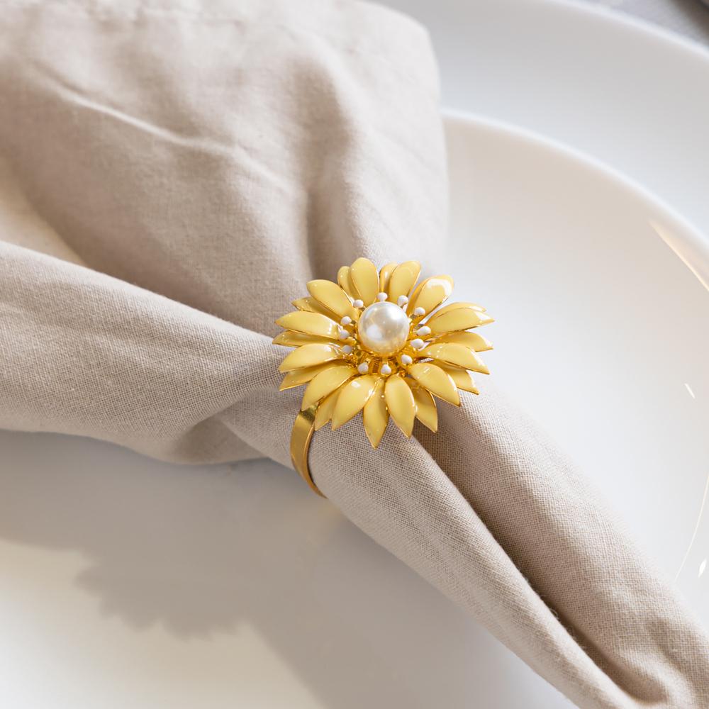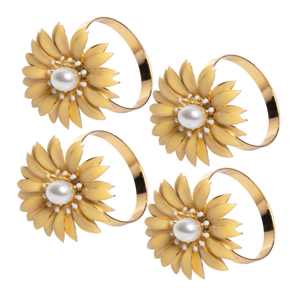 4 Anéis para Guardanapos Floratta 4cm x 4cm Amarelo Zamac