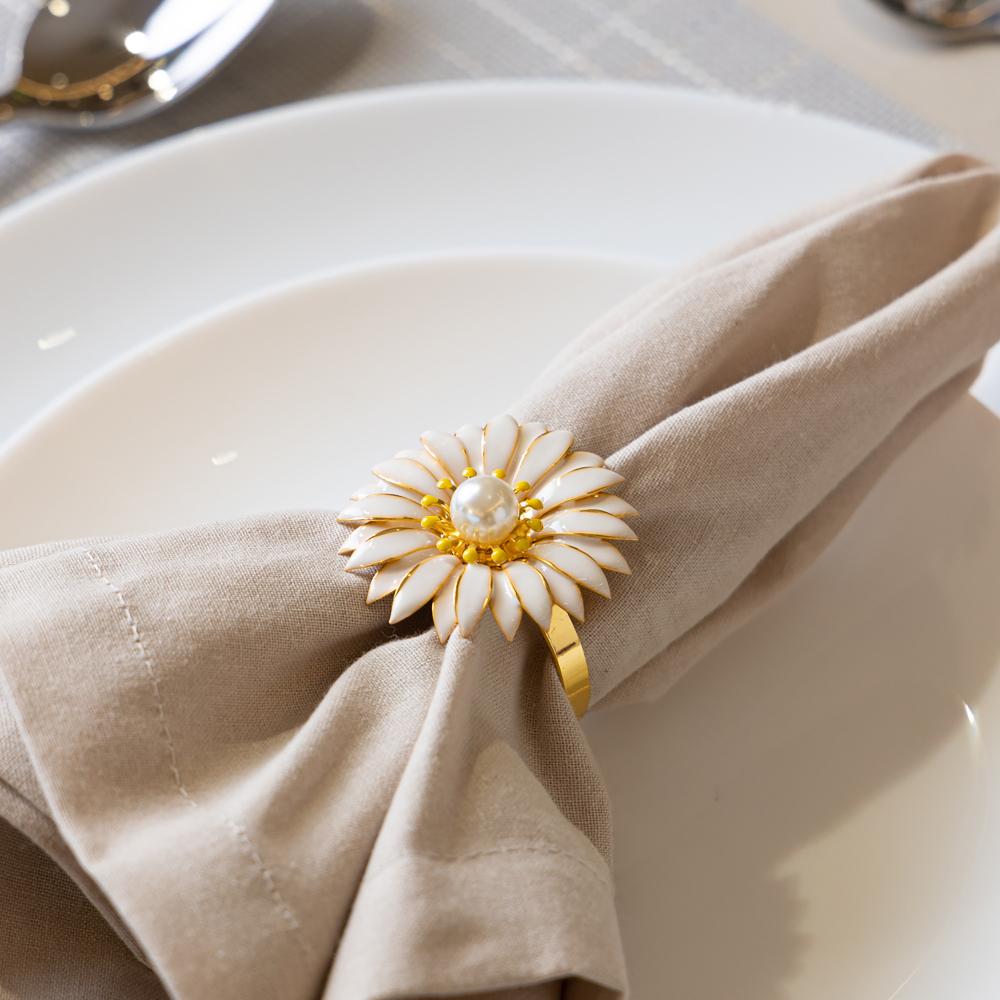 4 Anéis para Guardanapos Floratta 4cm x 4cm Branco Zamac
