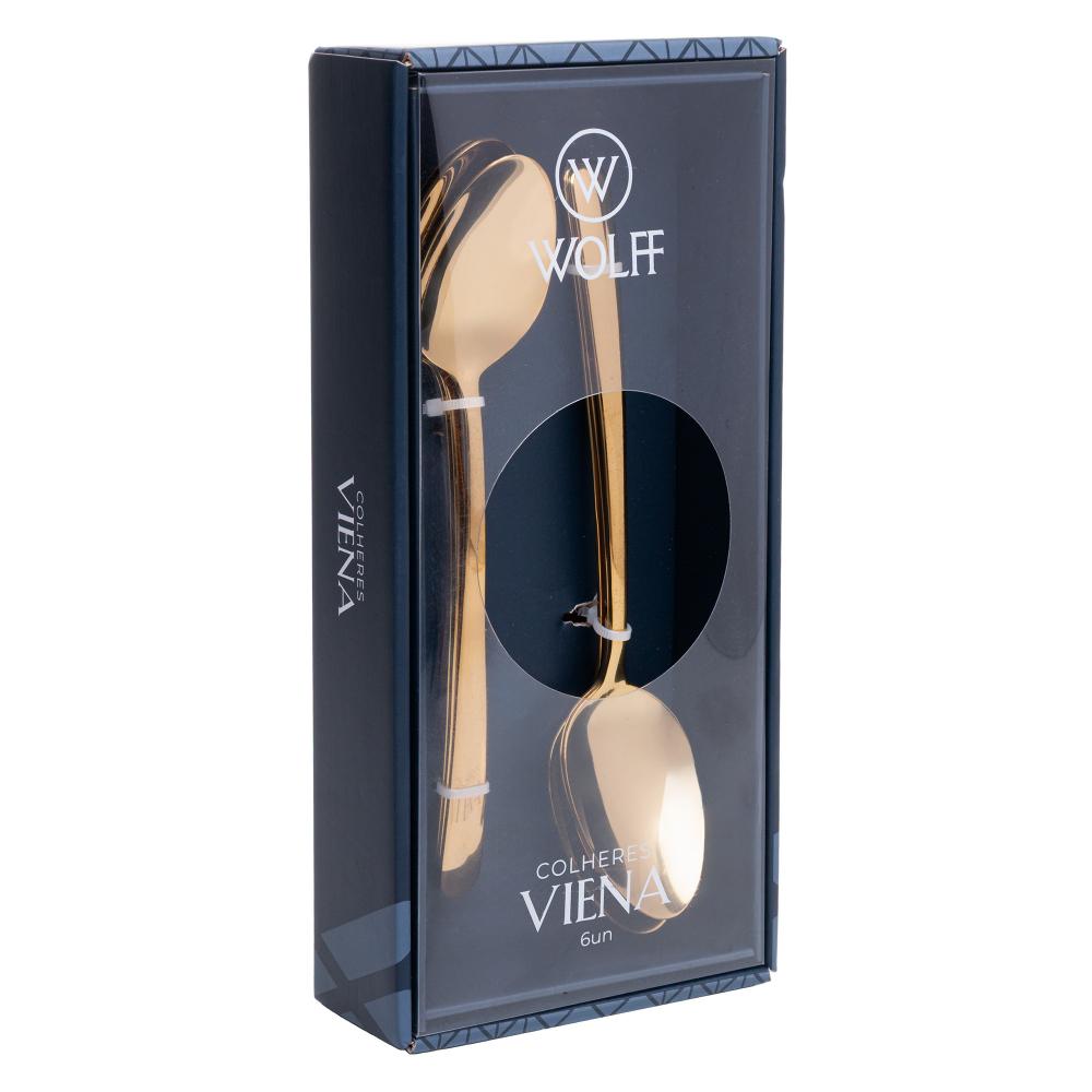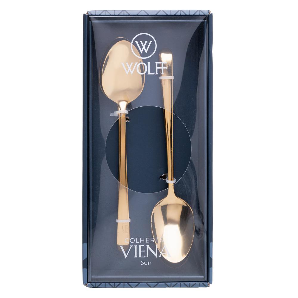 6 Colheres para Mesa Viena Dourado Aço Inox Wolff