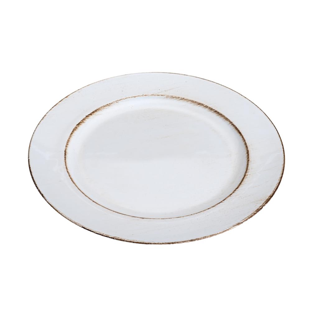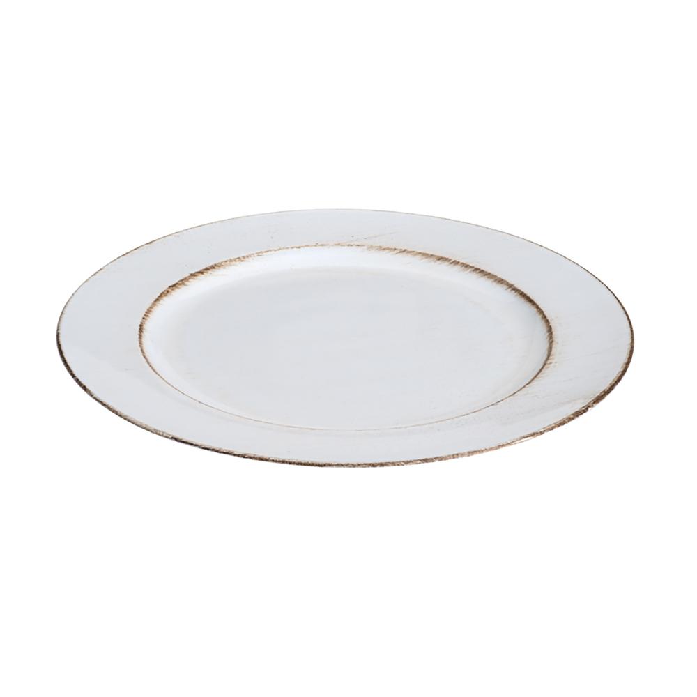Sousplat Patinado Lyor Opala Branco de Plástico 33cm