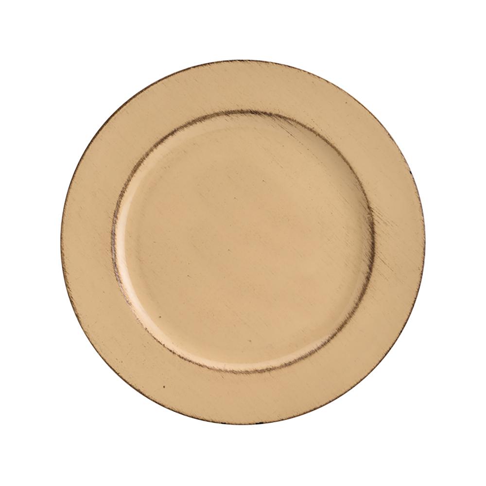 Sousplat Patinado Lyor Opala Bege de Plástico 33cm