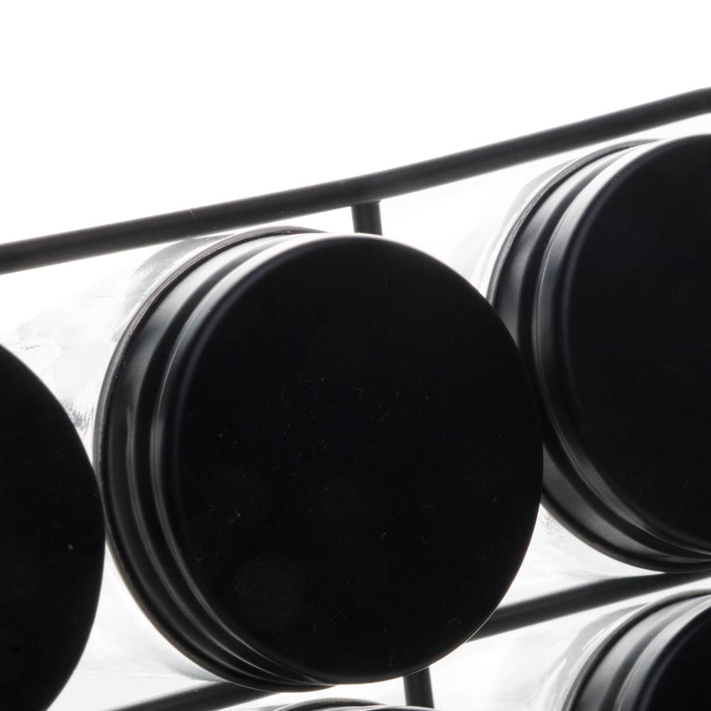 8 Potes Lyor para Temperos de Vidro e Suporte de Metal Preto