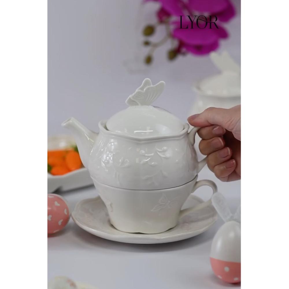 3 Peças para Chá Lyor Butterfly Flower de Porcelana