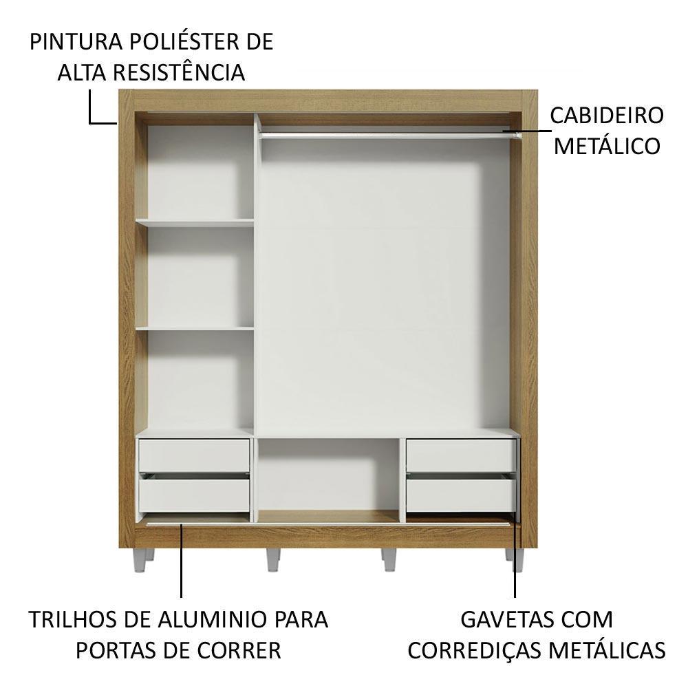 Guarda Roupa Casal Madesa Lyon Plus 3 Portas de Correr 4 Gavetas com Pés - Rustic/Branco