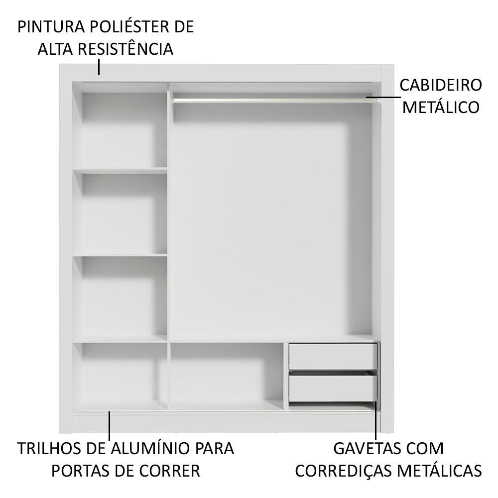 Guarda Roupa Casal Madesa Lyon 3 Portas de Correr com Espelho 2 Gavetas - Branco/Preto