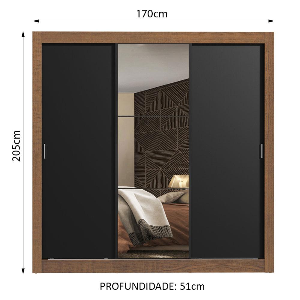 Guarda Roupa Casal Madesa Mônaco 3 Portas de Correr com Espelho - Rustic/Preto