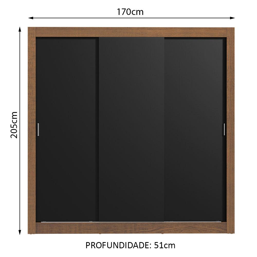 O Guarda-Roupa Lyon da Madesa conta com ferragens de qualidade, portas de correr com trilho superior e inferior em alumínio e sistema de deslizamento suave garantindo melhor funcionamento. Uma das portas possui espelhos que são bastante práticos e trazem profundidade ao ambiente.O aproveitamento interno é ideal para um casal. São duas gavetas com corrediça metálica, além de vários nichos que facilitam a organização de roupas, calçados e acessórios. O tubo cabideiro é metálico, muito resistente e possui espaço para roupas longas.O acabamento da estrutura combina os tons branco e preto e as portas são no padrão amadeirado Rustic. O processo é feito com a Pintura Poliéster de 7 camadas exclusiva da Madesa, um método ecológico e que confere maior durabilidade ao produto.Medidas totais: 205 cm de altura x 170 cm de largura x 51 cm de profundidade.As imagens são meramente ilustrativas.Itens inclusos:- Três (3) prateleiras totalizando cinco (5) nichos- Um (1) cabideiro grande- Duas (2) gavetas internas- Três (3) portas de correr com puxadores em alumínioCódigo do produto: 1093D81E2GObs.: A Madesa não disponibiliza serviço de montagem. O produto segue com as ferragens e manual com todos os passos para a instalação.1 – O produto é novo ou usado?R.: Todos os produtos da Madesa são novos, enviados da nossa fábrica diretamente para as casas de nossos clientes.2 – O produto vem montado? Se não, vocês realizam a montagem?R.: A Madesa não disponibiliza serviço de montagem. Todos os produtos seguem com manual de instalação e as ferragens necessárias. Alguns produtos possuem vídeo explicando o passo a passo da montagem.3 – Vocês possuem loja física? Posso retirar meu produto em mãos?R.: Não possuímos loja física, apenas loja virtual. Confira as opções de envio ao colocar o seu CEP.4 – Qual é o valor do envio? Posso pagar separadamente?R.: O valor do envio é calculado com base no peso e volume do produto, e no CEP de destino. Você pode calcular o valor e prazo de entrega no simulador.5 – A Madesa entrega em todo Brasil? Como é feita a entrega?R.: Sim, entregamos no Brasil inteiro através de transportadoras parceiras.6 – O produto acompanha Nota Fiscal?R.: Sim, todos os produtos são entregues com suas respectivas notas fiscais.7 – Os produtos possuem garantia?R.: Sim. A Madesa oferece 3 meses de garantia para defeitos de fabricação.A Madesa se dedica à sustentabilidade com várias iniciativas: temos uma usina própria para gerar energia que abastece uma de nossas fábricas. Selecionamos nossos fornecedores, priorizando aqueles que possuem um compromisso com a sustentabilidade e proteção do meio ambiente. Todo o plástico utilizado no setor produtivo é proveniente de reciclagem e as suas sobras são encaminhadas ao fornecedor que os recicla. Também investimos no desenvolvimento contínuo de nossos colaboradores e em ações educacionais que beneficiem a comunidade.