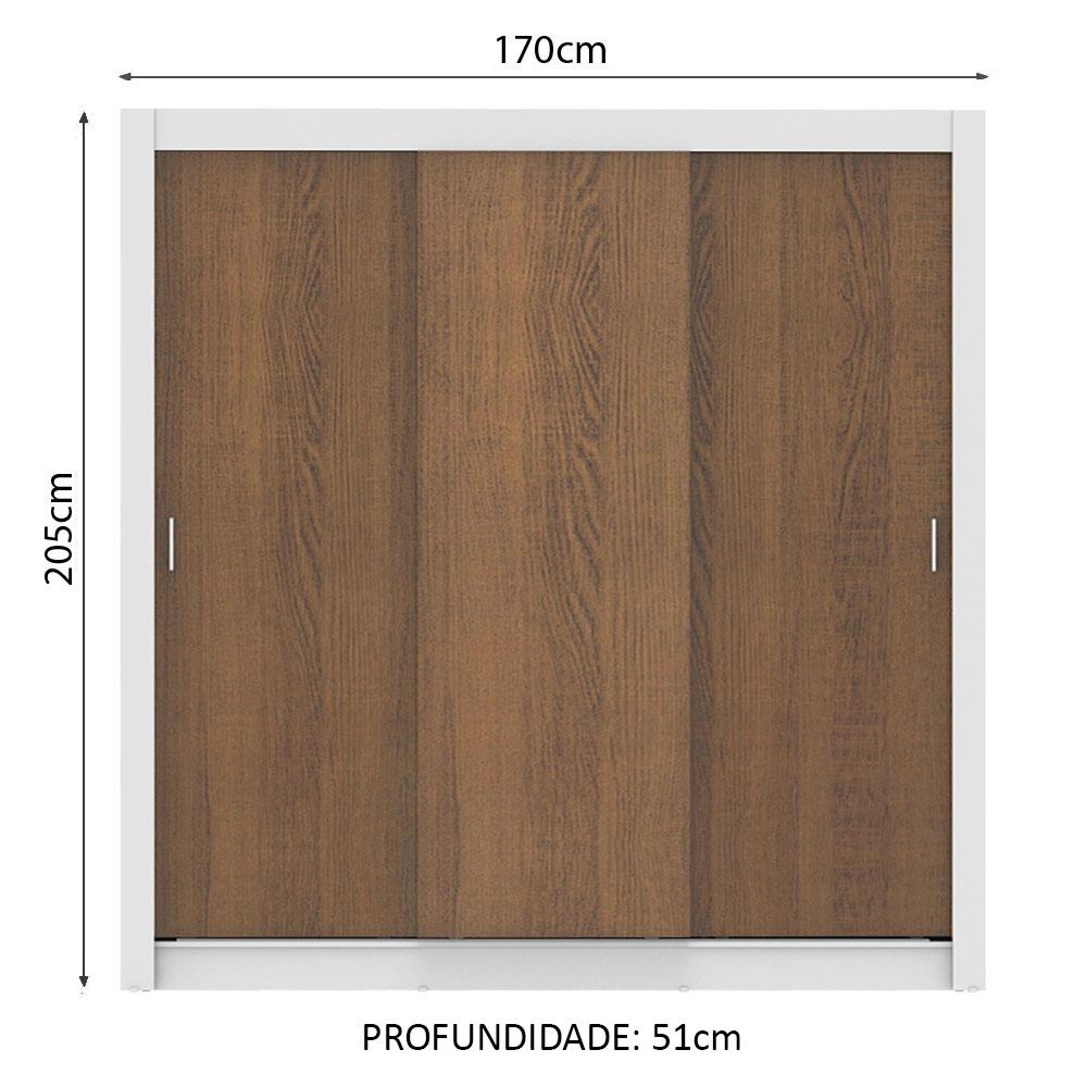 Guarda Roupa Casal Madesa Mônaco 3 Portas de Correr - Branco/Rustic