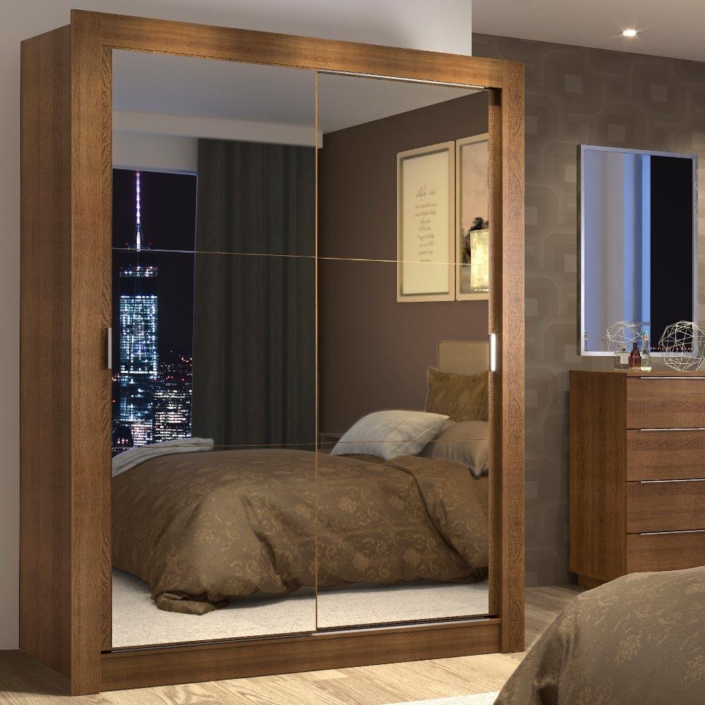 Guarda-Roupa Solteiro Madesa Denver 2 Portas de Correr de Espelho - Rustic