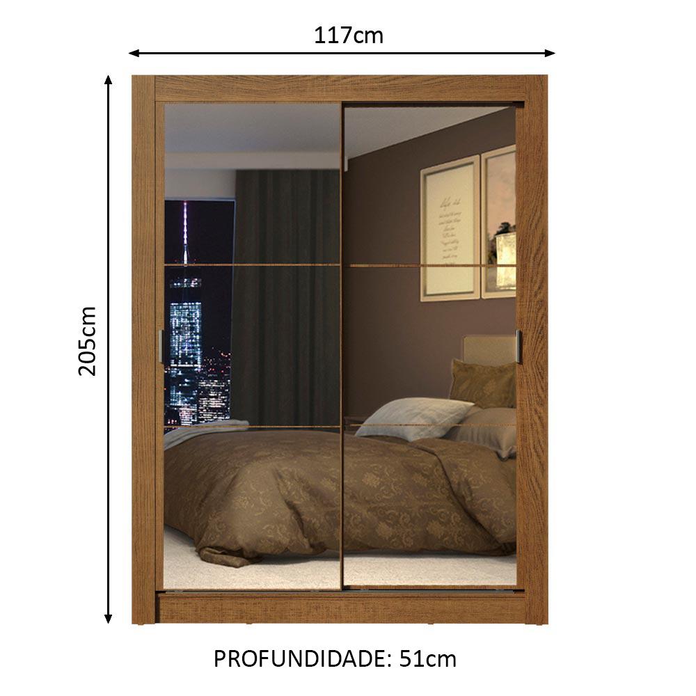 Guarda-Roupa com duas portas de correr de deslizamento suave, trilhos em alumínio, dobradiças metálicas e ferragens de qualidade que proporcionam melhor sustentação ao móvel. Contempla duas prateleiras e quatro nichos, além de um cabideiro de metal resistente e de tamanho diferenciado, 105 cm.Pensado na medida certa para quarto de solteiro, possui acabamento interno e externo no padrão amadeirado Rustic. As costas possuem acabamento branco. O processo é feito em Pintura Poliéster de alta resistência que confere maior qualidade e durabilidade ao produto.Medidas totais do guarda-roupa: 205 cm de altura x 117 cm de largura x 46 cm de profundidade.Imagem meramente ilustrativa.Itens inclusos:- Um (1) cabideiro metálico grande- Duas (2) prateleiras e quatro (4) nichos- Duas (2) portas de correr com espelhos e puxadores em PVCObs.: A Madesa não disponibiliza serviço de montagem. O produto segue com manual de instalação e todas as ferragens necessárias para sua montagem.1-O produto é novo ou usado?R.: Todos os produtos da Madesa são novos, enviados da nossa fábrica diretamente para as casas de nossos clientes.2-O produto vem montado? Se não, vocês realizam a montagem?R.: A Madesa não disponibiliza serviço de montagem. Todos os produtos seguem com manual de instalação e as ferragens necessárias. Alguns produtos possuem vídeo explicando o passo a passo da montagem.3-Vocês possuem loja física? Posso retirar meu produto em mãos?R.: Não possuímos loja física, apenas loja virtual. Confira as opções de envio ao colocar o seu CEP.4-Qual é o valor do envio? Posso pagar separadamente?R.: O valor do envio é calculado com base no peso e volume do produto, e no CEP de destino. Você pode calcular o valor e prazo de entrega no simulador.5-A Madesa entrega em todo Brasil? Como é feita a entrega?R.: Sim, entregamos no Brasil inteiro através de transportadoras parceiras.6-O produto acompanha Nota Fiscal?R.: Sim, todos os produtos são entregues com suas respectivas notas fiscais.7-Os produtos possuem garantia?R.: Sim. A Madesa oferece 3 meses de garantia para defeitos de fabricação.A Madesa se dedica à sustentabilidade com várias iniciativas: temos uma usina própria para gerar energia que abastece uma de nossas fábricas. Selecionamos nossos fornecedores, priorizando aqueles que possuem um compromisso com a sustentabilidade e proteção do meio ambiente. Todo o plástico utilizado no setor produtivo é proveniente de reciclagem e as suas sobras são encaminhadas ao fornecedor que os recicla. Também investimos no desenvolvimento contínuo de nossos colaboradores e em ações educacionais que beneficiem a comunidade.