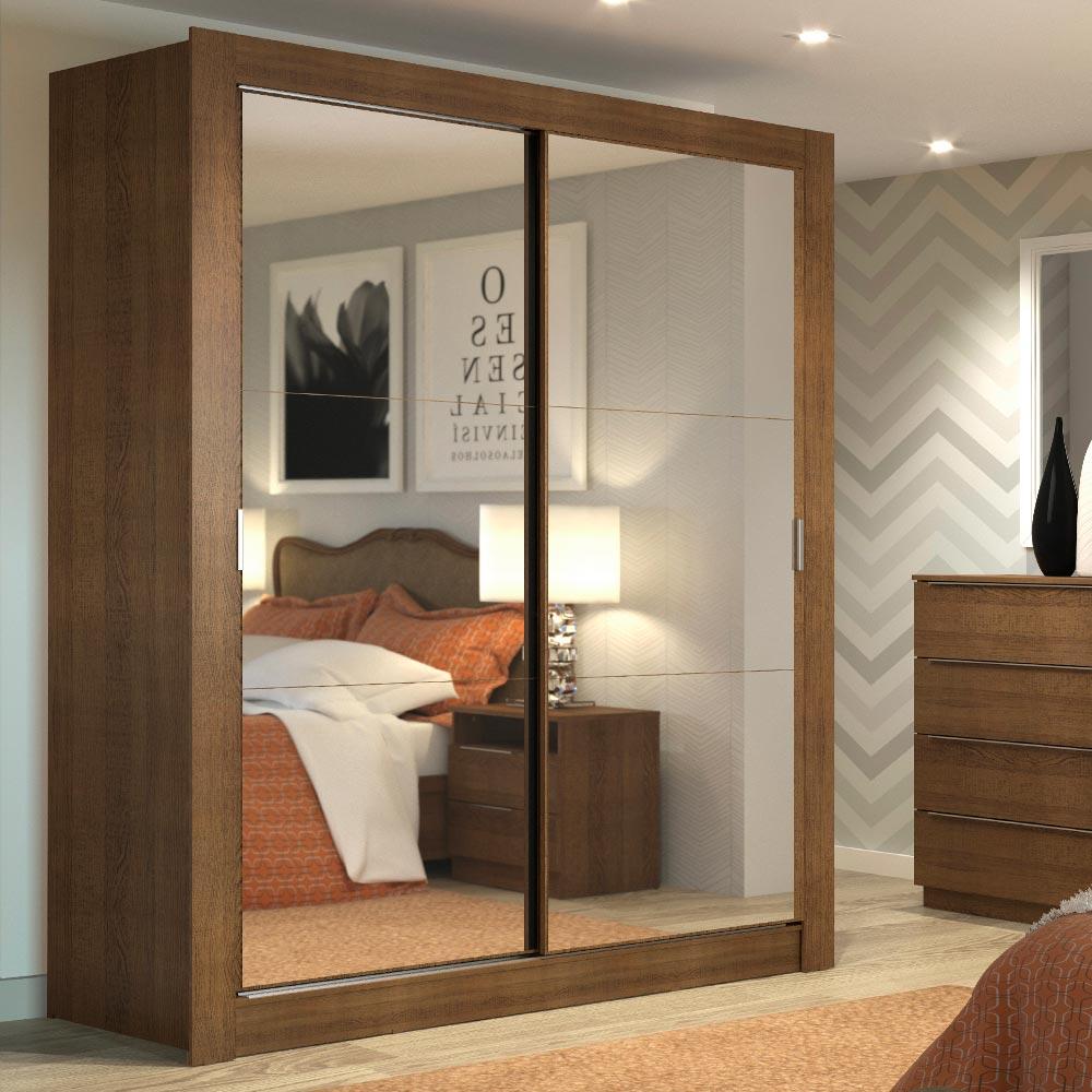 Guarda-Roupa Solteiro Madesa Dallas 2 Portas de Correr de Espelho 2 Gavetas - Rustic