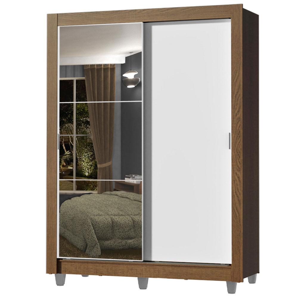 Guarda-Roupa Solteiro Madesa Dallas 2 Portas de Correr com Espelho 2 Gavetas com Pés - Rustic/Branco