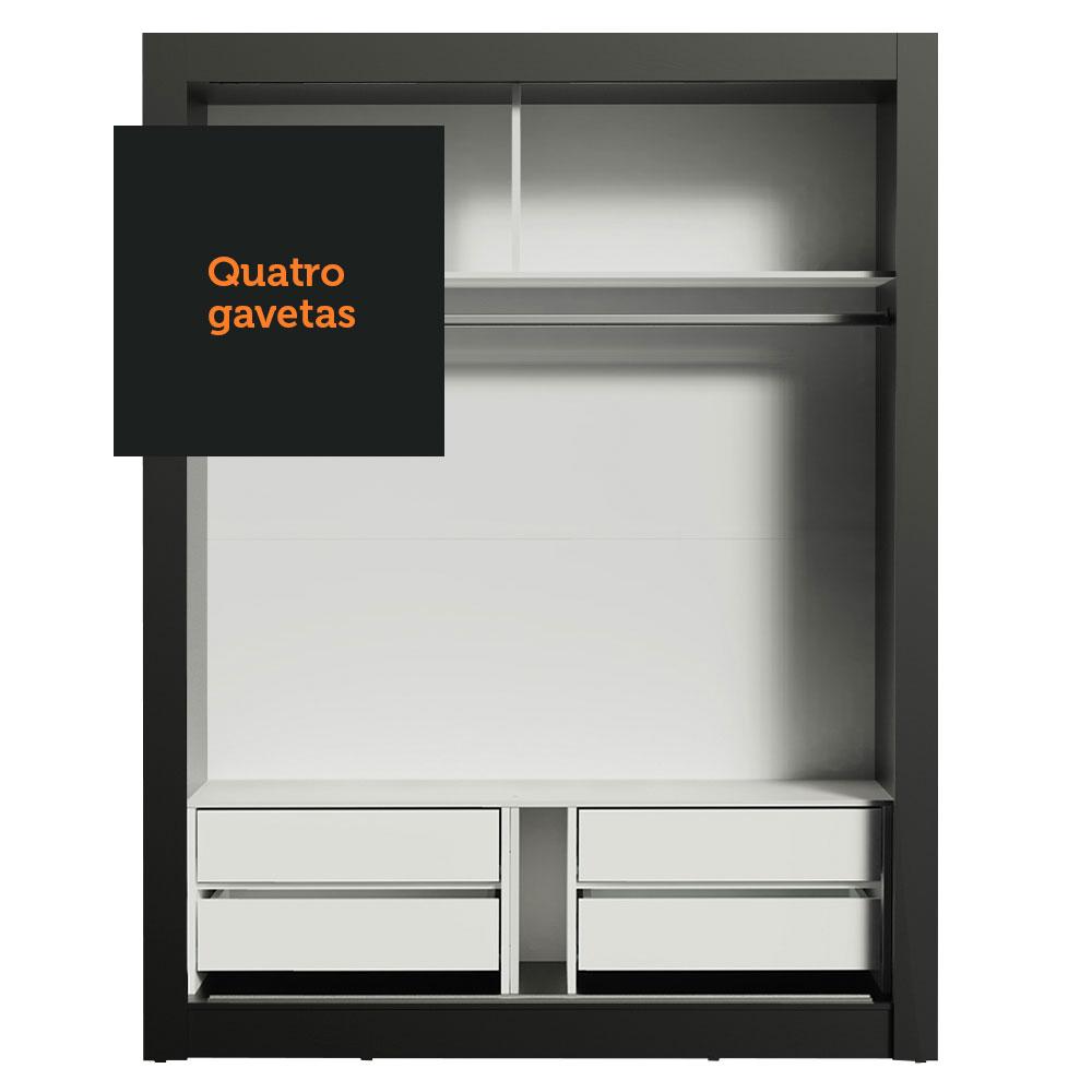 Guarda-Roupa Solteiro Madesa Dallas Plus 2 Portas de Correr 4 Gavetas