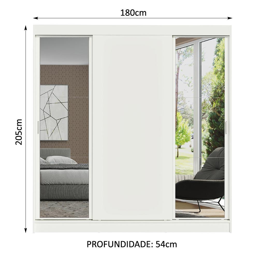 Guarda-Roupa Casal Madesa Reno 3 Portas de Correr com Espelhos - Branco
