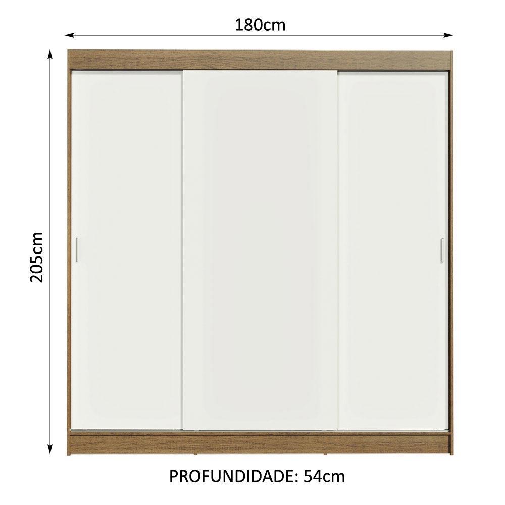 Guarda-Roupa Casal Madesa Reno 3 Portas de Correr - Rustic/Branco