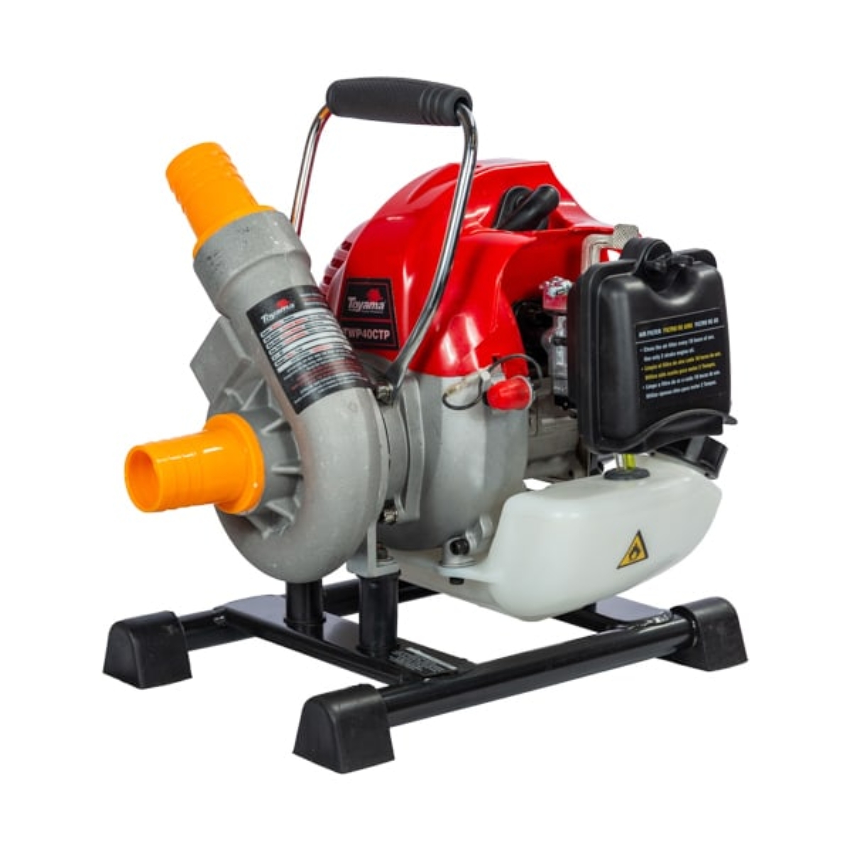 Motobomba Centrífuga Toyama 2.4HP: Potência, Durabilidade e Eficiência para Suas Tarefas A Motobomba Centrífuga Toyama TWP40CTP redefine a eficiência para suas necessidades de transferência e irrigação. Desenvolvida para uso frequente, esta motobomba combina a robustez da marca Toyama com um desempenho excepcional. Equipada com um motor gasolina 2 tempos de 2.4 HP de potência máxima e partida manual, ela garante força e confiabilidade sempre que você precisar. Seu design inovador, com corpo, rotor e voluta fabricados em alumínio de alta resistência e durabilidade, assegura uma longa vida útil mesmo nas condições mais exigentes. Com diâmetros de sucção e recalque de 1 1/2, a TWP40CTP se destaca pela sua capacidade de realizar transferências com média vazão e alta pressão de água. Esta motobomba Toyama é a solução perfeita para uma variedade de demandas: desde pequenos e médios projetos de irrigação em hortas e jardins, até a transferência de médios volumes de água para abastecimentos de tanques agrícolas e caminhões pipa. Também é ideal para o esvaziamento de pequenos lagos ou tanques de peixes, oferecendo versatilidade e eficácia em qualquer cenário. Leve e prática, conta com uma alça de transporte que facilita sua movimentação, tornando-a a escolha inteligente para quem busca performance e conveniência. Especificações Tipo de Motobomba: Centrífuga Refrigeração: Refrigerado a Ar Cilindros: Monocilíndrico Tipo do Motor: 2 Tempos Sistema de Partida: Manual Retrátil Cilindrada: 62 cc Rotação Máxima: 6500 RPM Capacidade do Tanque: 1.1 l Diâmetro de Entrada e Saída: 1 1/2 x 1 1/2 Sucção: 8 m Elevação: 40 m Vazão: 20 m³/h Itens Inclusos Motobomba Centrífuga Toyama Alum 1.1/2x1.1/2 2T 2,4hp Perguntas Frequentes (FAQ) Pergunta: Qual a potência do motor da Motobomba Toyama TWP40CTP?Resposta: Esta motobomba é equipada com um motor gasolina 2 tempos de 2.4 HP de potência máxima. Pergunta: Quais são as aplicações recomendadas para esta motobomba?Resposta: É ideal para irrigação em hortas e jardins, abastecimento de tanques agrícolas e caminhões pipa, e esvaziamento de pequenos lagos ou tanques de peixes. Pergunta: De que material são feitos o corpo e o rotor da motobomba?Resposta: O corpo, o rotor e a voluta são fabricados em alumínio de alta resistência e durabilidade.