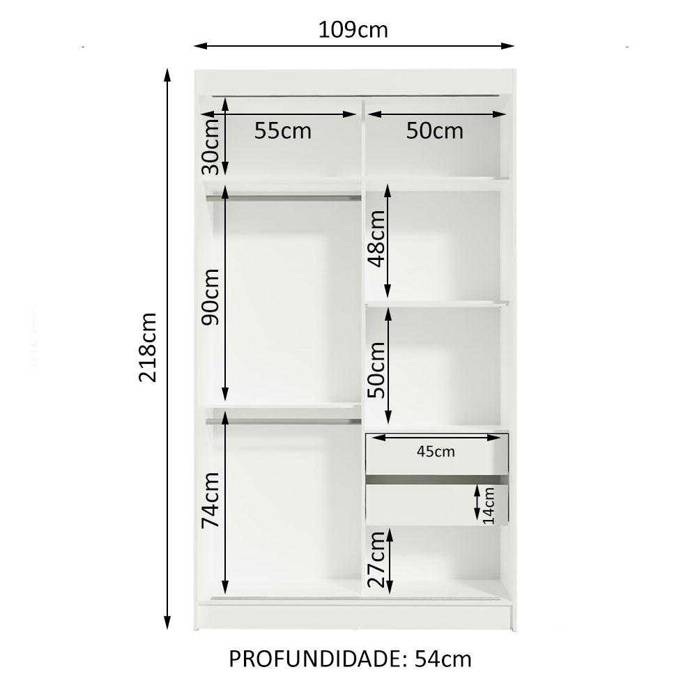 Pensado na medida para quarto de solteiro, o Guarda-Roupa Tokio da Madesa tem como destaque o total aproveitamento de espaço.Os materiais utilizados são de alta qualidade, com duas portas de correr com deslizamento suave e puxadores em alumínio, dobradiças metálicas e trilho superior e inferior em alumínio. Ambas as portas possuem espelhos, que além de trazerem beleza, também transmitem a sensação de um ambiente mais amplo.Internamente, contempla duas gavetas com corrediças metálicas, diversas prateleiras e nichos, além de dois cabideiros de madeira com espaço para roupas longas e curtas. A profundidade maior é um grande diferencial.Possui acabamento todo branco, com exceção das portas, que são pretas. O feito em Pintura Poliéster de alta resistência, que confere maior qualidade e durabilidade ao produto.Medidas totais do guarda-roupa: 218 cm de altura x 109 cm de largura x 54 cm de profundidade.Imagens meramente ilustrativas. A decoração não acompanha o produto.Itens inclusos:- Duas (2) portas de correr em MDP com espelhos e puxadores em alumínio- Duas (2) gavetas com corrediças metálicas- Dois (2) cabideiros de madeira- Cinco (5) nichosCódigo do produto: 1097732EObs.: A Madesa não disponibiliza serviço de montagem. O produto segue com as ferragens necessárias e manual com todos os passos para a instalação.1 – O produto é novo ou usado?R.: Todos os produtos da Madesa são novos, enviados da nossa fábrica diretamente para as casas de nossos clientes.2 – O produto vem montado? Se não, vocês realizam a montagem?R.: A Madesa não disponibiliza serviço de montagem. Todos os produtos seguem com manual de instalação e as ferragens necessárias. Alguns produtos possuem vídeo explicando o passo a passo da montagem.3 – Vocês possuem loja física? Posso retirar meu produto em mãos?R.: Não possuímos loja física, apenas loja virtual. Confira as opções de envio ao colocar o seu CEP.4 – Qual é o valor do envio? Posso pagar separadamente?R.: O valor do envio é calculado com base no peso e volume do produto, e no CEP de destino. Você pode calcular o valor e prazo de entrega no simulador.5 – A Madesa entrega em todo Brasil? Como é feita a entrega?R.: Sim, entregamos no Brasil inteiro através de transportadoras parceiras.6 – O produto acompanha Nota Fiscal?R.: Sim, todos os produtos são entregues com suas respectivas notas fiscais.7 – Os produtos possuem garantia?R.: Sim. A Madesa oferece 3 meses de garantia para defeitos de fabricação.A Madesa se dedica à sustentabilidade com várias iniciativas: temos uma usina própria para gerar energia que abastece uma de nossas fábricas. Selecionamos nossos fornecedores, priorizando aqueles que possuem um compromisso com a sustentabilidade e proteção do meio ambiente. Todo o plástico utilizado no setor produtivo é proveniente de reciclagem e as suas sobras são encaminhadas ao fornecedor que os recicla. Também investimos no desenvolvimento contínuo de nossos colaboradores e em ações educacionais que beneficiem a comunidade.