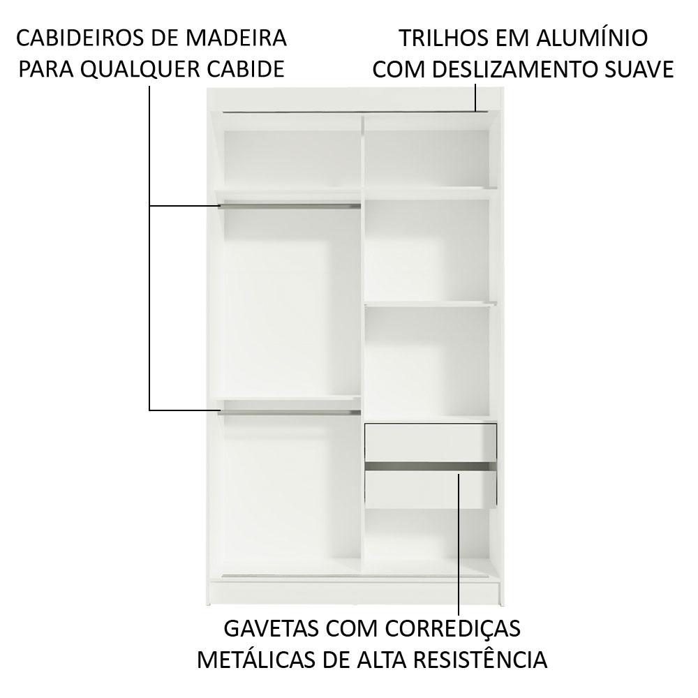 Guarda-Roupa Solteiro Madesa Tokio 2 Portas de Correr de Espelho 2 Gavetas - Branco/Preto