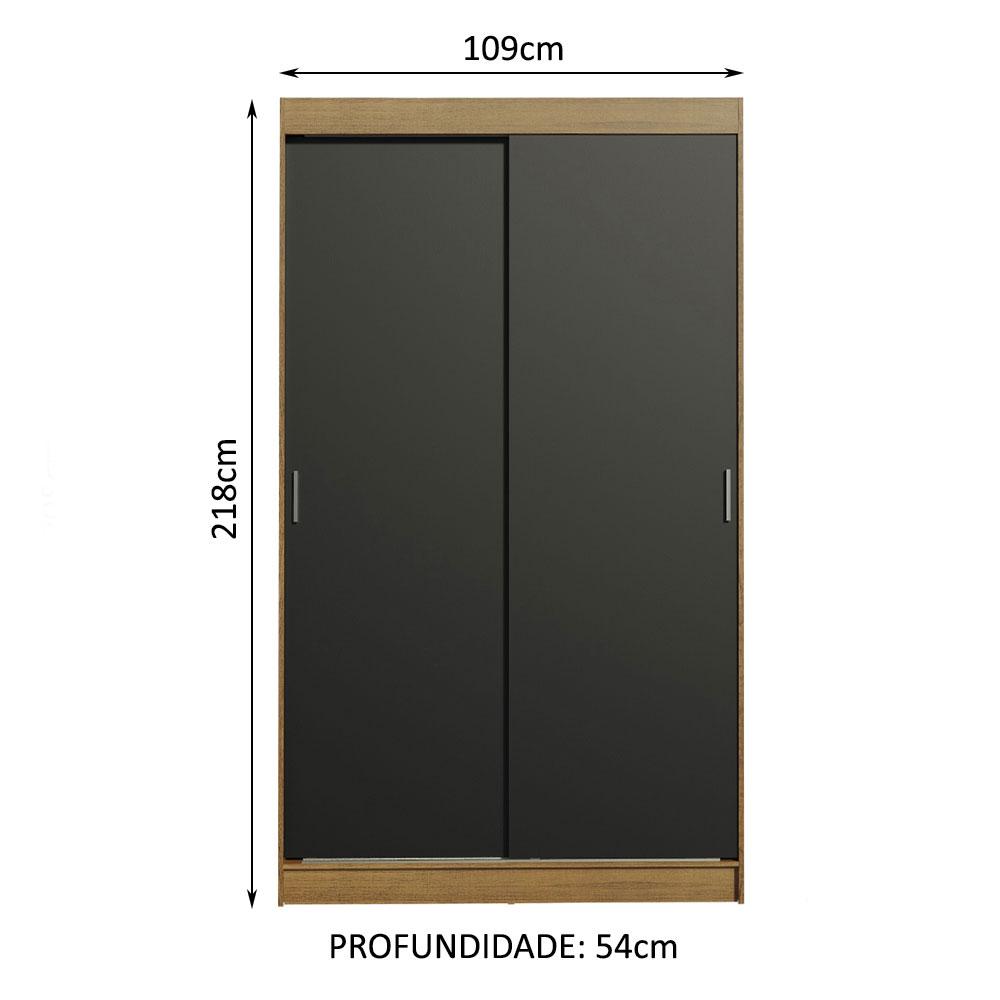 Guarda-Roupa Solteiro Madesa Tokio 2 Portas de Correr 2 Gavetas - Rustic/Preto