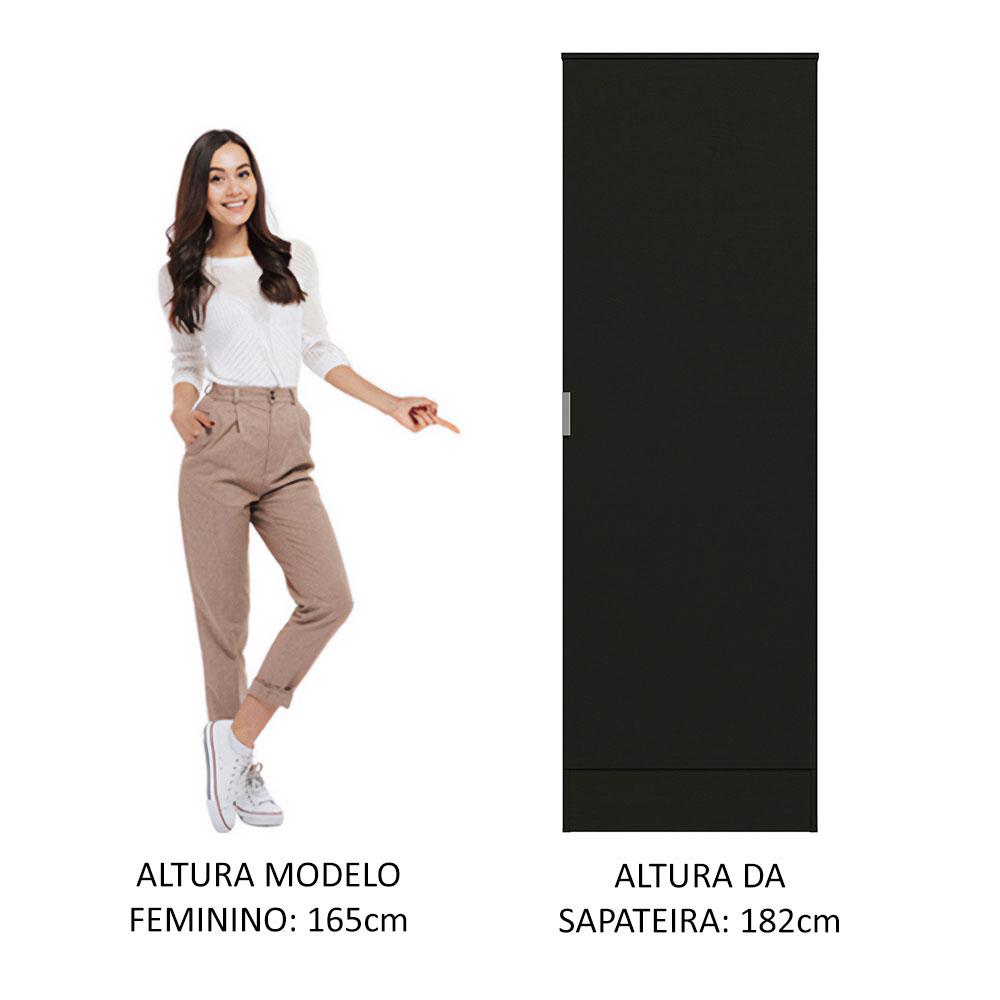 Precisando de um móvel versátil para auxiliar na organização da sua casa? Este armário pode ser utilizado nos mais variados cômodos, seja no quarto, na lavanderia ou na garagem.Com uma parte interna com diversas prateleiras e nichos, você pode usar este móvel como um armário multiúso, para armazenar utensílios na sua lavanderia ou área de serviço.Outra possibilidade de uso é como sapateira, para fazer a organização dos seus calçados.A fabricação é feita com materiais de muita qualidade, com uma porta batente, dobradiças metálicas e puxador em alumínio, mais resistente ao uso diário.O acabamento preto é feito em Pintura Poliéster ecológica de alta resistência, processo que confere maior qualidade e durabilidade ao móvel.Medidas totais:- 182 cm de altura- 60 cm de largura- 40 cm de profundidadeItens inclusos:- Uma (1) Sapateira com uma (1) porta e puxador em alumínioCódigo do produto: 11048NObs.:- Para melhor utilização, é obrigatória a fixação da sapateira na parede- Imagens meramente ilustrativas, a decoração não acompanha o produto- A Madesa não disponibiliza serviço de montagem- O produto segue com manual e todas as ferragens necessárias para a instalação1 – O produto é novo ou usado?R.: Todos os produtos da Madesa são novos, enviados da nossa fábrica diretamente para as casas de nossos clientes.2 – O produto vem montado? Se não, vocês realizam a montagem?R.: A Madesa não disponibiliza serviço de montagem. Todos os produtos seguem com manual de instalação e as ferragens necessárias. Alguns produtos possuem vídeo explicando o passo a passo da montagem.3 – Vocês possuem loja física? Posso retirar meu produto em mãos?R.: Não possuímos loja física, apenas loja virtual. Confira as opções de envio ao colocar o seu CEP.4 – Qual é o valor do envio? Posso pagar separadamente?R.: O valor do envio é calculado com base no peso e volume do produto, e no CEP de destino. Você pode calcular o valor e prazo de entrega no simulador.5 – A Madesa entrega em todo Brasil? Como é feita a entrega?R.: Sim, entregamos no Brasil inteiro através de transportadoras parceiras.6 – O produto acompanha Nota Fiscal?R.: Sim, todos os produtos são entregues com suas respectivas notas fiscais.7 – Os produtos possuem garantia?R.: Sim. A Madesa oferece 3 meses de garantia para defeitos de fabricação.A Madesa se dedica à sustentabilidade com várias iniciativas: temos uma usina própria para gerar energia que abastece uma de nossas fábricas. Selecionamos nossos fornecedores, priorizando aqueles que possuem um compromisso com a sustentabilidade e proteção do meio ambiente. Todo o plástico utilizado no setor produtivo é proveniente de reciclagem e as suas sobras são encaminhadas ao fornecedor que os recicla. Também investimos no desenvolvimento contínuo de nossos colaboradores e em ações educacionais que beneficiem a comunidade.