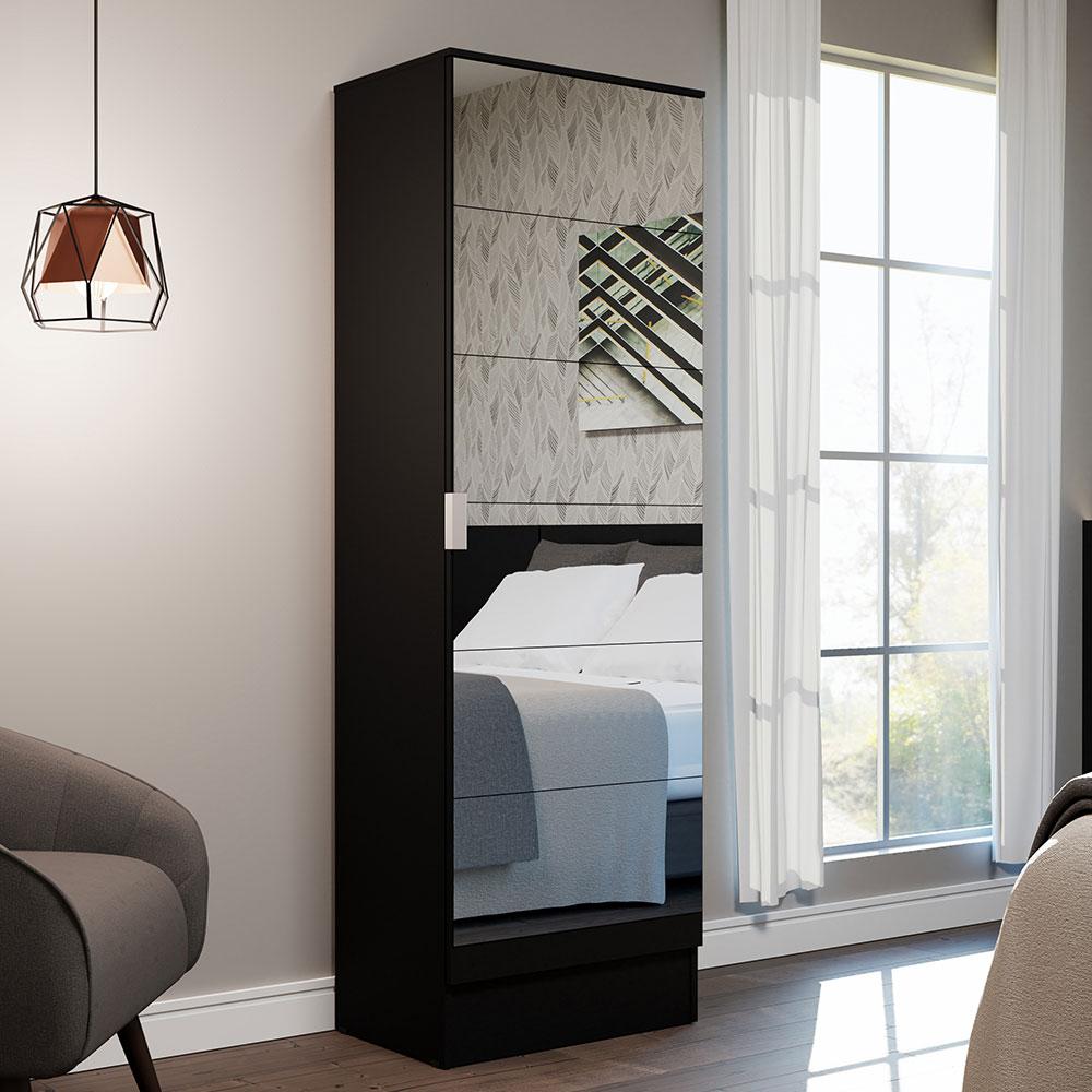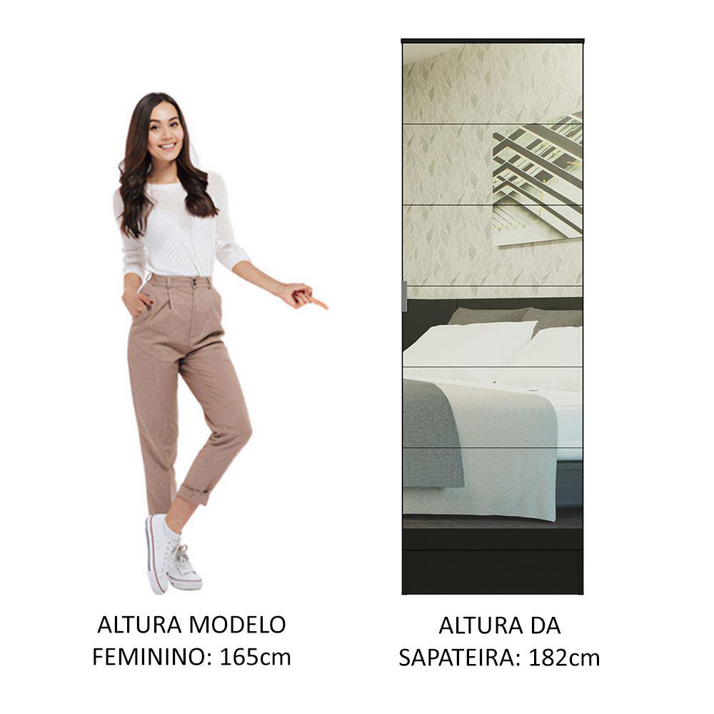 Sapateira Armário Multiúso Madesa Isis 1 Porta com Espelhos - Preto