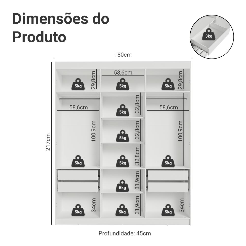 O Closet Venus da Madesa é a escolha ideal para quem busca organização e praticidade com um design moderno. Sua estrutura aberta oferece fácil acesso aos seus itens, proporcionando um ambiente funcional no seu dia a dia. O closet conta com dois cabideiros, várias prateleiras amplas e quatro gavetas espaçosas, garantindo flexibilidade e espaço suficiente para acomodar roupas, calçados e acessórios com facilidade. As gavetas com corrediças telescópicas permitem abertura total, enquanto o amplo maleiro é perfeito para itens maiores. Além disso, você pode ajustar as gavetas e prateleiras para personalizar o interior conforme suas necessidades. O acabamento de alta resistência é em Branco, traz uma estética moderna e sofisticada, perfeita para quem deseja transformar o ambiente com estilo. Com o Closet Venus, você tem um espaço otimizado e funcional, aliado a um design que se adapta ao seu estilo e necessidades. Medidas totais: - 217 cm de altura- 180 cm de largura- 45 cm de profundidade O que você recebe:- Um (1) Closet de 180 cm de largura com quatro (4) Gavetas Código do produto: 110609CL4GL1 É importante saber:- Material: MDP- O móvel NÃO acompanha portas- As imagens são meramente ilustrativas, a decoração não acompanha o produto- A Madesa não oferece serviço de montagem- Acompanha ferragens e manual com todos os passos para a montagem do produto A Madesa se dedica à sustentabilidade com várias iniciativas: temos uma usina própria que gera energia para uma das fábricas. Priorizamos fornecedores responsáveis com o meio ambiente. Todo o plástico utilizado na produção é reciclado, e as sobras também são reaproveitadas. Investimos no desenvolvimento de nossos colaboradores e em ações que beneficiem a comunidade.