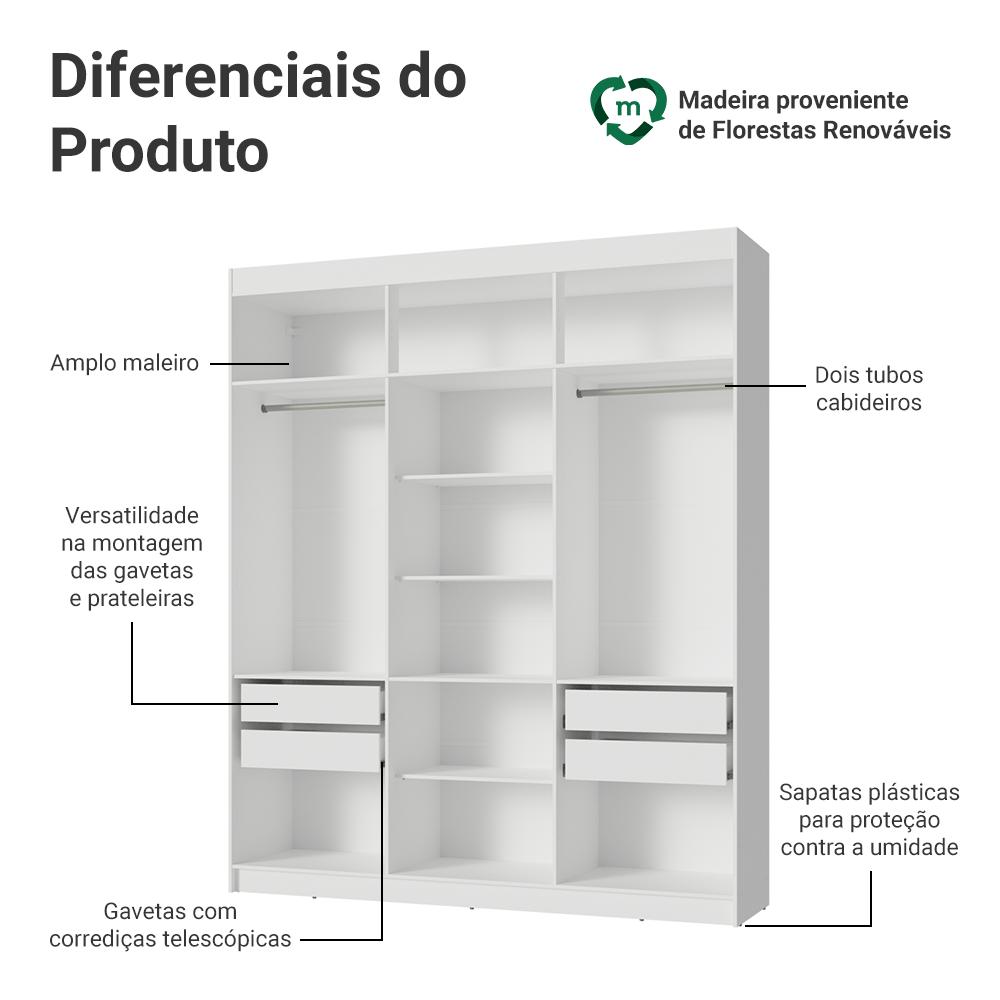 Guarda-Roupa Closet 4 Gavetas 180 cm Branco Venus Madesa