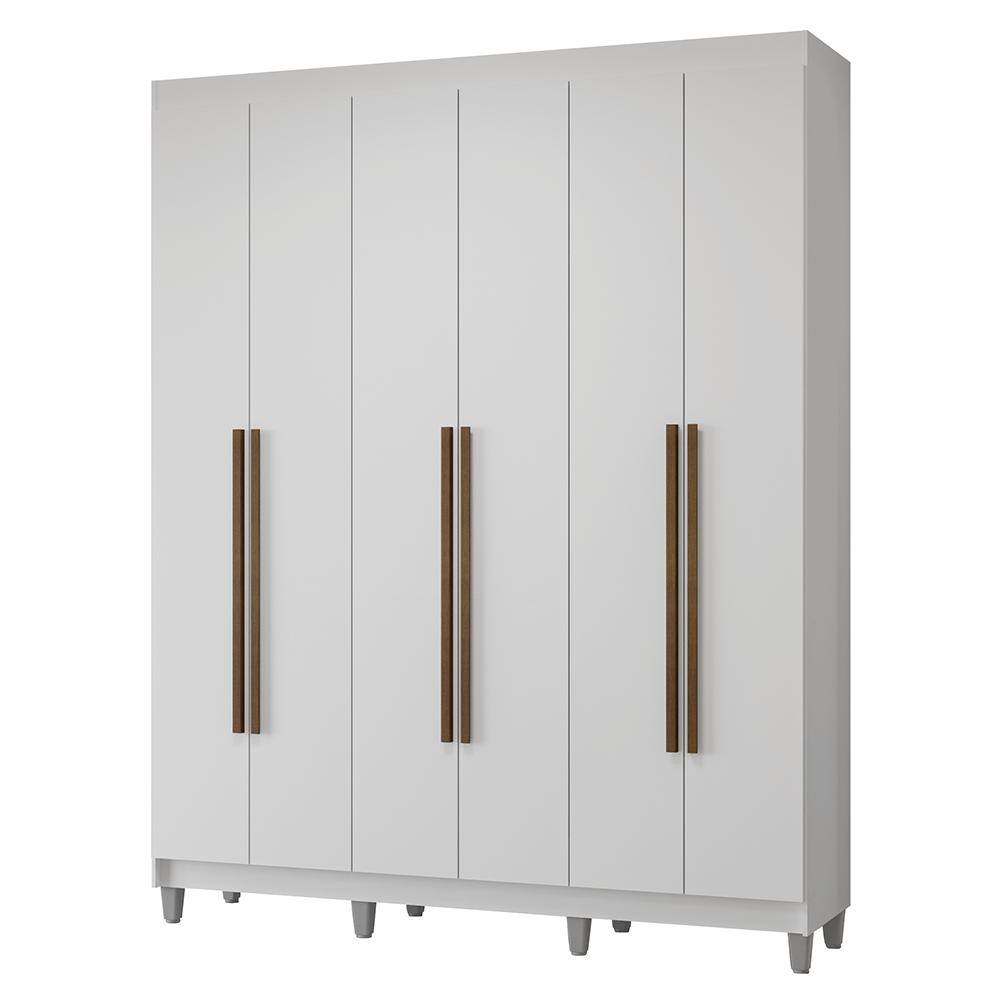 Guarda-Roupa Casal com Pés 6 Portas Batentes Branco/Branco/Rustic Netuno Madesa