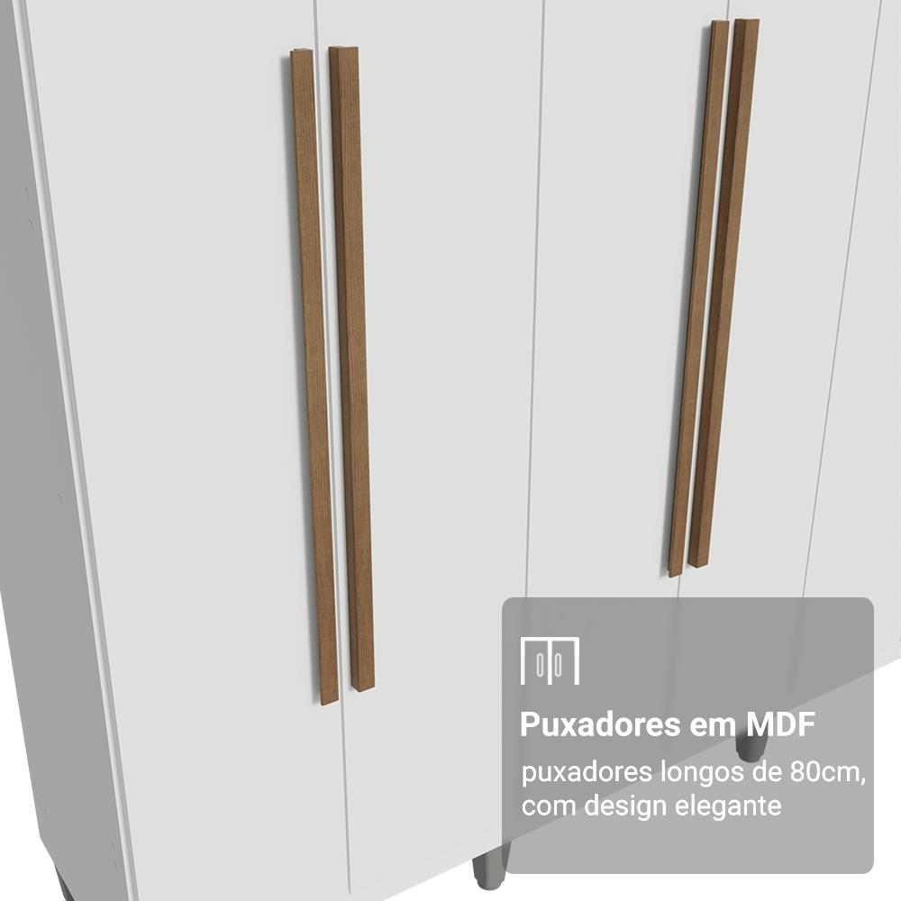 O Guarda-Roupa Netuno é a escolha ideal para quem busca um móvel funcional com detalhes que fazem toda a diferença.Garantindo versatilidade para organizar seu espaço da melhor forma. As portas contam com dobradiças com amortecimento, fechando suavemente. As gavetas possuem corrediças que permitem abertura total, enquanto o amplo maleiro é perfeito para itens maiores. Além disso, você pode ajustar as gavetas e prateleiras para personalizar o interior conforme suas necessidades.Possui um acabamento de alta resistência, que garante durabilidade por muito mais tempo. A estrutura e as portas são Brancas e os puxadores em tom amadeirado Rustic, criando um visual sofisticado que se adapta a qualquer estilo de decoração. Os puxadores de 80 cm, fabricados em MDF, são um dos grandes diferenciais, trazendo um design alongado e moderno.Medidas:- 180 cm de largura- 47 cm de profundidade- 227 cm de alturaO que você recebe:- Um Guarda-Roupa com seis portas batentesCódigo do produto: 1106J54GL3CPÉ importante saber:- Imagens meramente ilustrativas.- A Madesa não disponibiliza serviço de montagem.- Por segurança, é obrigatório fixar o móvel na parede.- O produto segue com manual de instalação e todas as ferragens necessárias para sua montagem.A Madesa se dedica à sustentabilidade com várias iniciativas: temos uma usina própria que gera energia para uma das fábricas. Priorizamos fornecedores responsáveis com o meio ambiente. Todo o plástico utilizado na produção é reciclado, e as sobras também são reaproveitadas. Investimos no desenvolvimento de nossos colaboradores e em ações que beneficiem a comunidade.