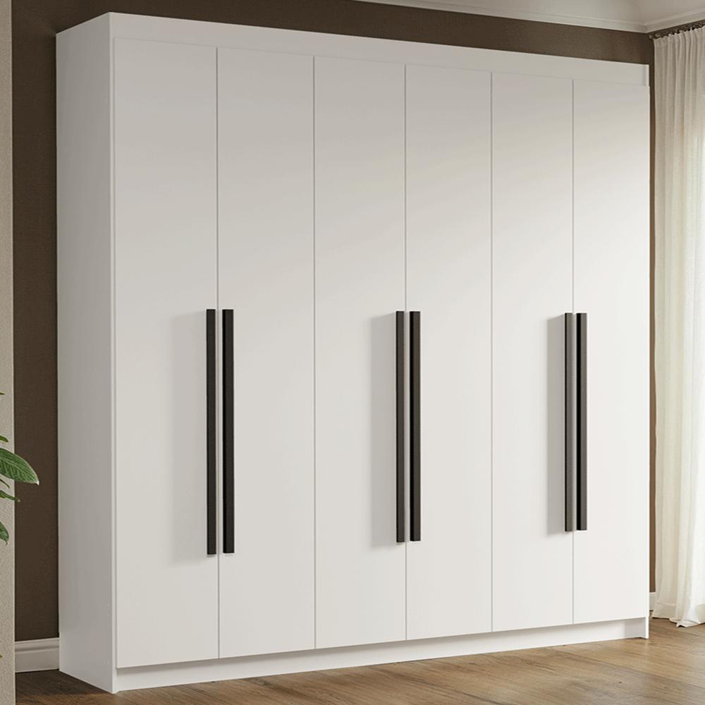 Guarda-Roupa Casal 6 Portas Batentes Branco/Branco/Preto Venus Madesa