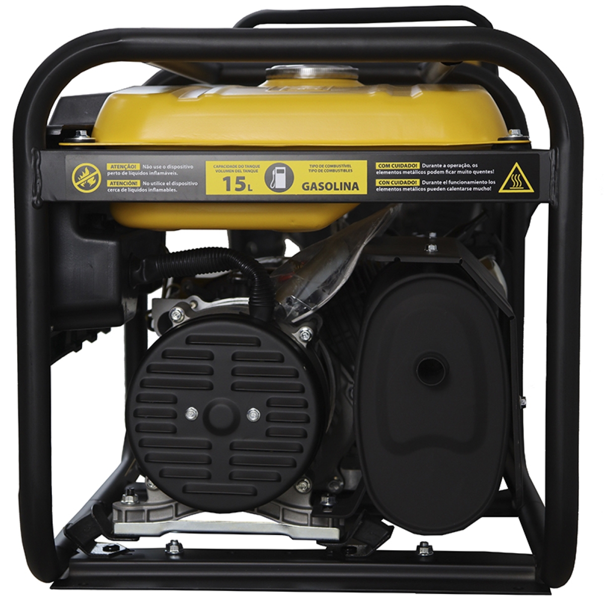 Gerador a Gasolina Denzel PS-25: Energia Confiável para Suas Necessidades O Gerador a Gasolina Denzel PS-25 946029 é a solução ideal para quem precisa de energia onde e quando precisar. Com potência de 2,5 kW, este gerador é perfeito para residências rurais, atividades ao ar livre como acampamentos e pescarias, ou como fonte de energia auxiliar em estabelecimentos comerciais. Alimente lâmpadas, laptops, televisores, geladeiras, ferramentas e até mesmo carregue seus dispositivos móveis através da porta USB de 5V ou utilize os terminais de 12V para carregar baterias de carro. Projetado para oferecer confiabilidade e durabilidade, o Denzel PS-25 possui um sistema de controle intuitivo, tornando-o fácil de operar para usuários de todos os níveis de experiência. Sua construção robusta, com eixo de distribuição em metal e revestimento de cilindro em ferro fundido, garante um funcionamento estável e prolongado. Além disso, o sistema AVR protege seus equipamentos eletrônicos sensíveis contra flutuações de tensão, enquanto o sistema de proteção contra baixo nível de óleo, curto-circuito e sobrecarga assegura a integridade do motor. Com o Denzel PS-25, tenha a tranquilidade de contar com energia segura e eficiente em qualquer situação. Especificações Fabricante do Motor: Denzel Número de Fases: 1 (Monofásico) Número de Soquetes: 2 Vela de Ignição: F7TC Capacidade do Tanque de Combustível: 15 L Volume de Óleo no Cárter: 0.6 L Itens Inclusos Gerador a Gasolina Denzel PS-25 Perguntas Frequentes (FAQ) Pergunta: Qual a potência do Gerador Denzel PS-25?Resposta: O Gerador Denzel PS-25 possui uma potência de 2,5 kW. Pergunta: O gerador é bivolt?Resposta: Sim, o gerador possui saídas de 115/230V. Pergunta: Qual o tipo de combustível utilizado?Resposta: Este gerador utiliza gasolina como combustível. Pergunta: Qual a garantia do produto?Resposta: O Gerador Denzel PS-25 possui garantia de 6 meses oferecida pelo fabricante.