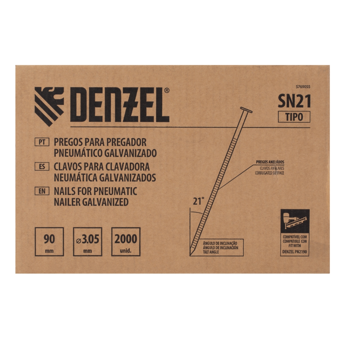 Pregos Galvanizados para Pregador Pneumático 90mm 3,05mm 2000 Unidades Denzel Resistente à Corrosão