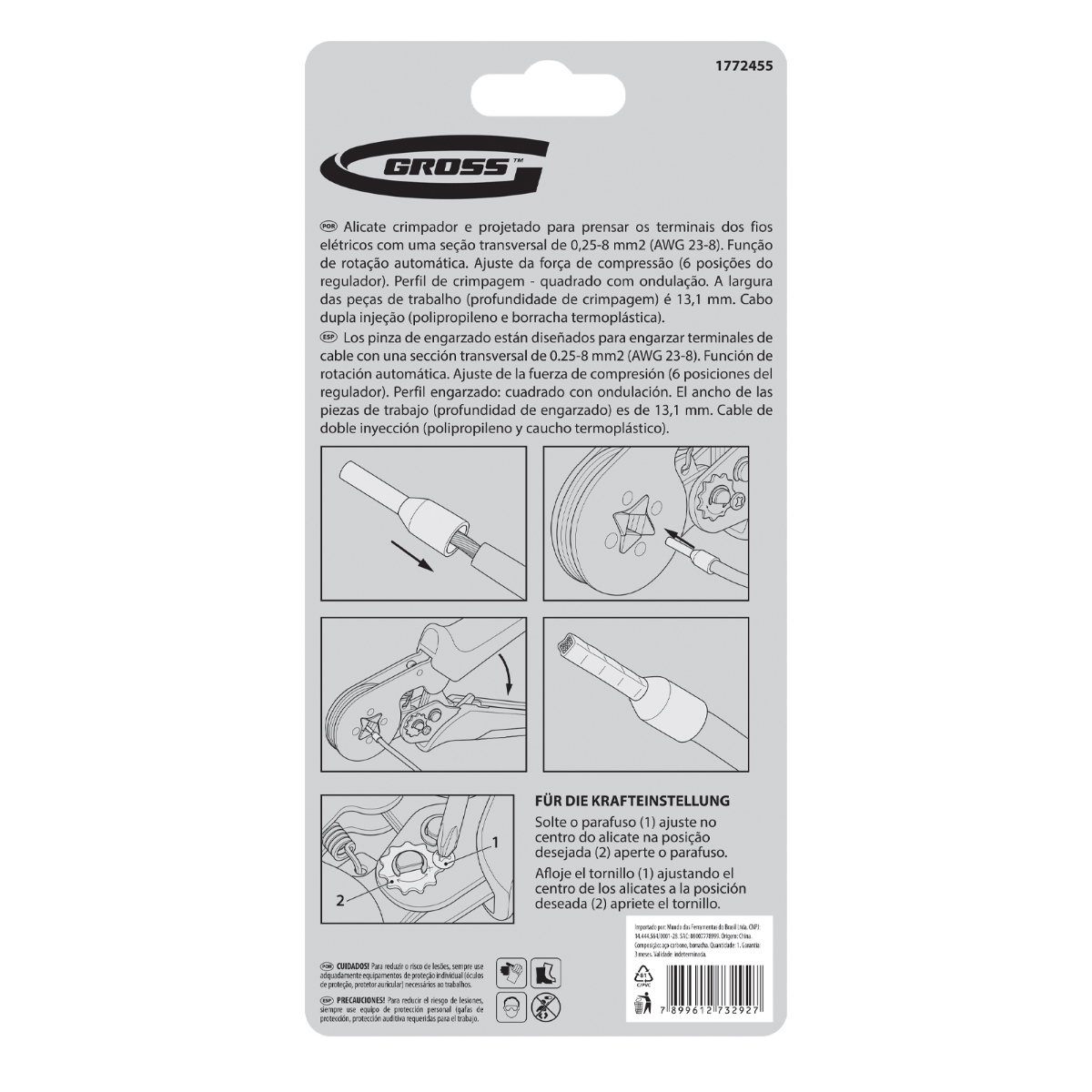 Alicate Pressão Terminais Aço Cabo Emborrachado 0,5-8mm 6 Etapas Gross 1772455