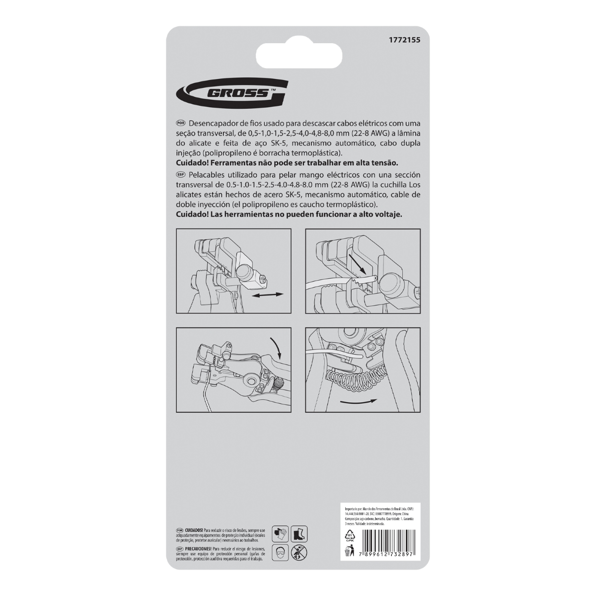 Alicate Desencapador de Fios Corte 0.5-8mm Aço Cabo Emborrachado 1PC Gross 1772155