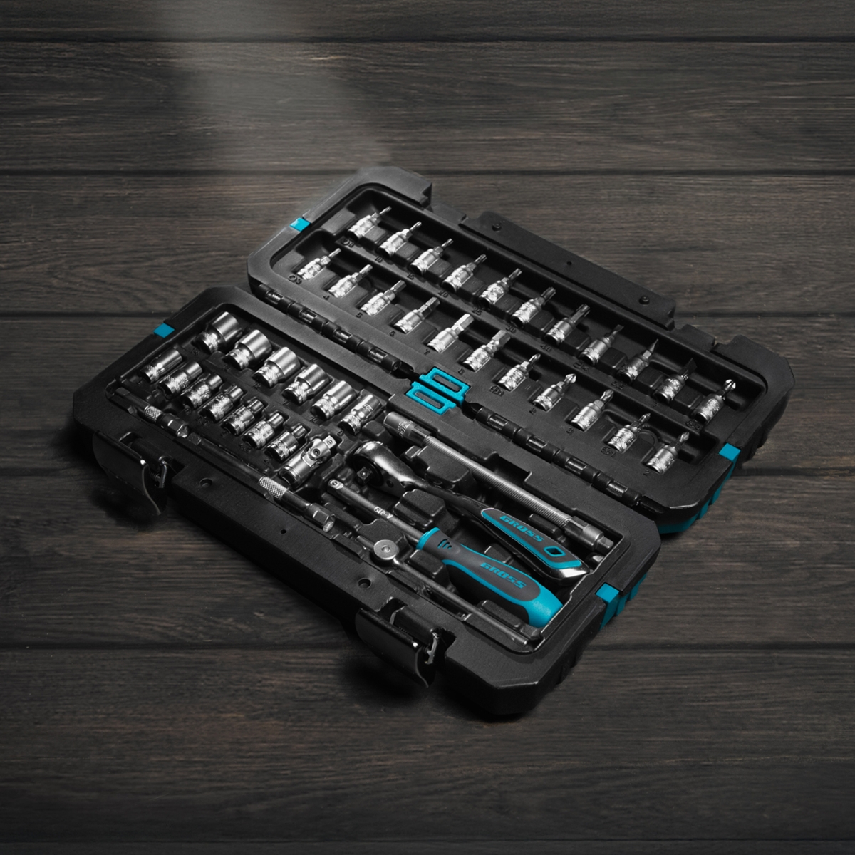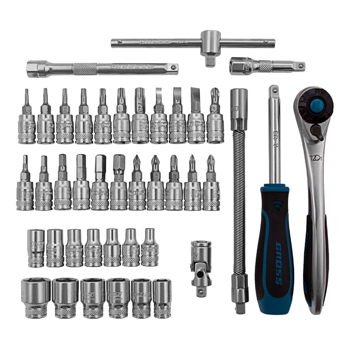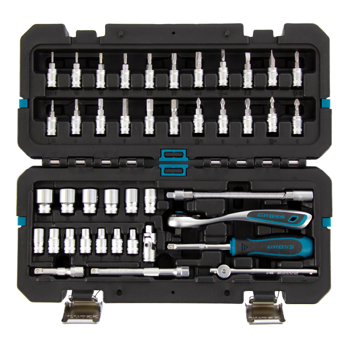 Jogo de Ferramentas 42 Peças 1/4 Gross 1414655 Catraca 120 Dentes Maleta Plástica Aço CrV